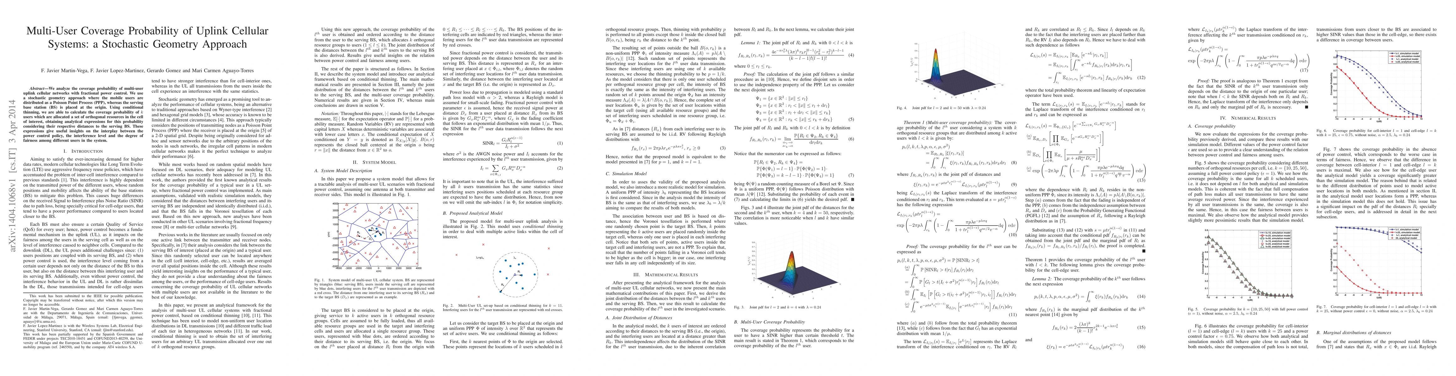 We analyze the coverage probability of multi-user uplink cellular networks with fractional power control. We use a stochastic geometry approach where the mobile users are distributed as a Poisson Point Process (PPP), whereas the serving base station (BS) is placed at the origin. Using conditional thinning, we are able to calculate the coverage probability of $k$ users which are allocated a set of orthogonal resources in the cell of interest, obtaining analytical expressions for this probability considering their respective distances to the serving BS. These expressions give useful insights on the interplay between the power control policy, the interference level and the degree of fairness among different users in the system.