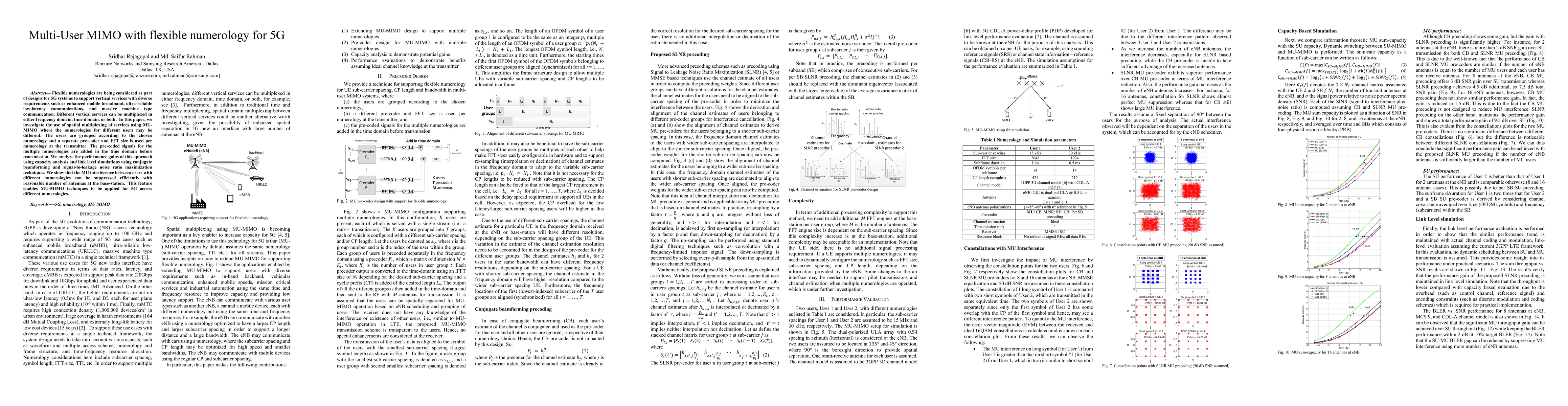 Researchers explored the use of flexible numerologies in 5G systems to support diverse requirements, demonstrating improved interference suppression with a reasonable number of antennas.