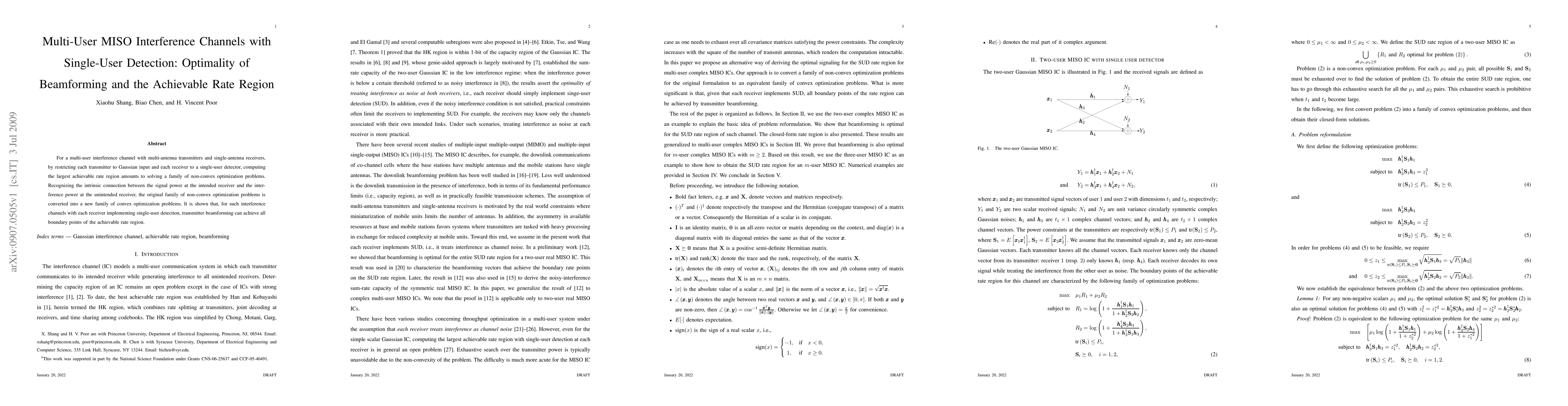This paper investigates multi-user MISO interference channels with single-user detection, demonstrating that transmitter beamforming can achieve the optimal achievable rate region by converting non-convex optimization problems into convex ones. It concludes that beamforming is optimal for maximizing the rate region in such setups.
