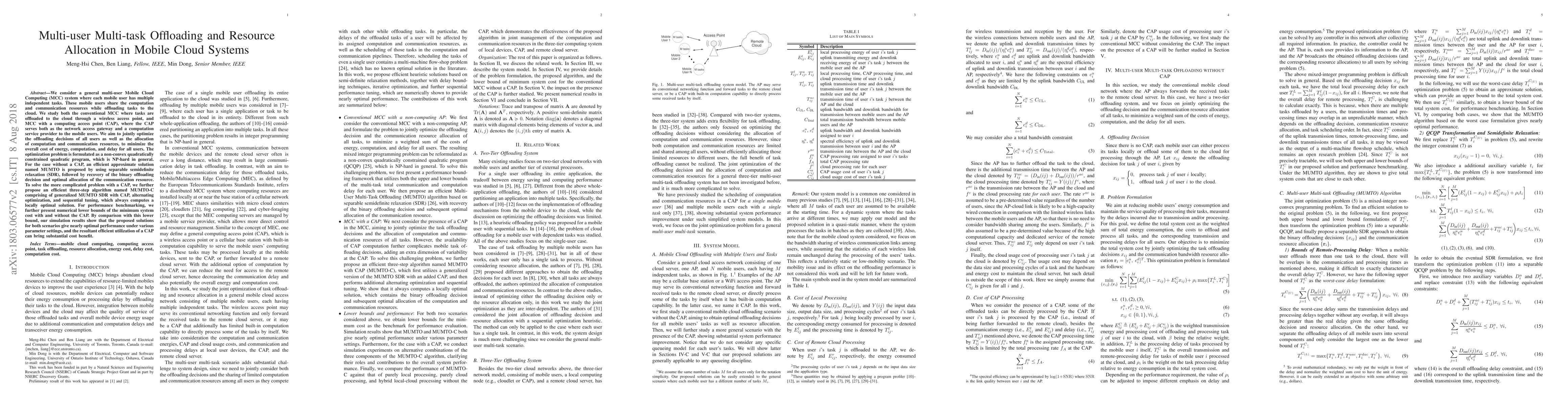 This research paper proposes efficient solutions for optimizing resource allocation in mobile cloud systems to minimize energy, computation, and delay costs for multiple users with shared resources.