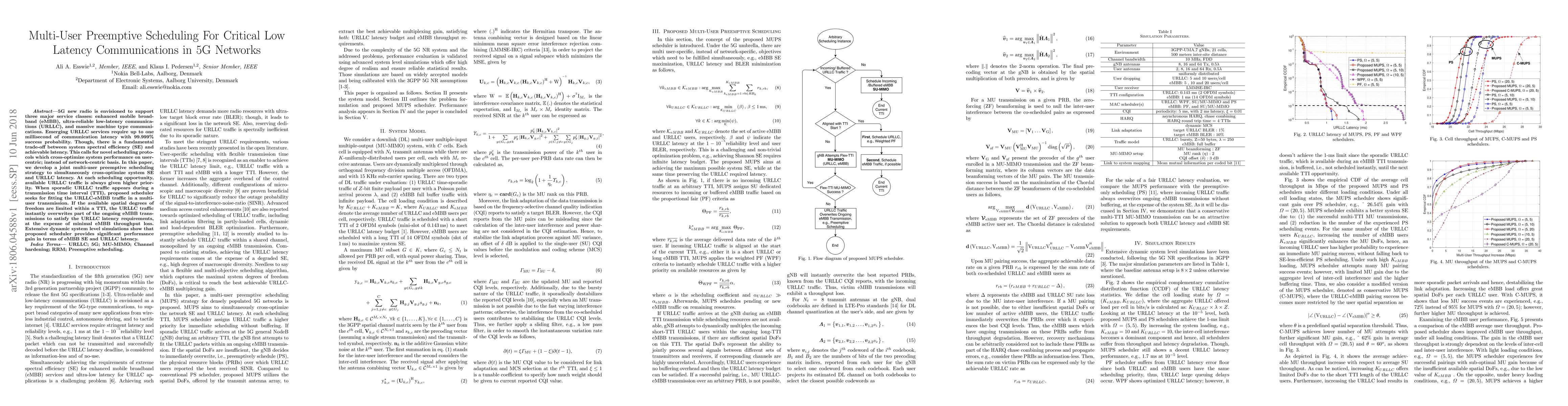 This paper proposes a multi-user preemptive scheduling strategy for 5G networks to optimize both system spectral efficiency and ultra-reliable low-latency communications (URLLC) latency. The scheduler prioritizes URLLC traffic, allowing it to preempt ongoing enhanced mobile broadband (eMBB) transmissions when necessary to meet stringent latency requirements.