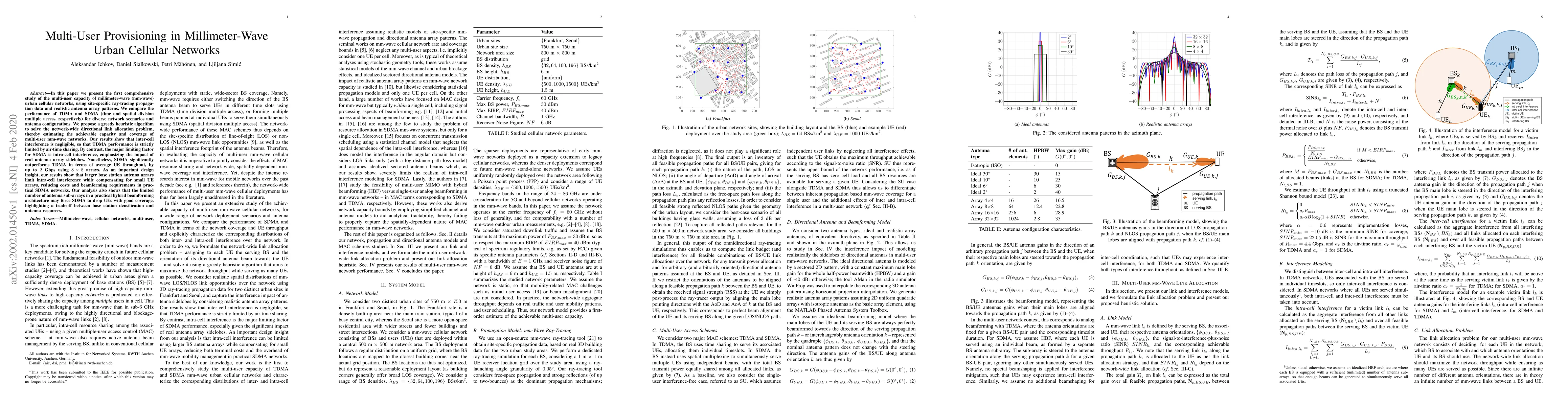 In this paper we present the first comprehensive study of the multi-user capacity of millimeter-wave (mm-wave) urban cellular networks, using site-specific ray-tracing propagation data and realistic antenna array patterns. We compare the performance of TDMA and SDMA (time and spatial division multiple access, respectively) for diverse network scenarios and antenna configurations. We propose a greedy heuristic algorithm to solve the network-wide directional link allocation problem, thereby estimating the achievable capacity and coverage of multi-user mm-wave networks. Our results show that inter-cell interference is negligible, so that TDMA performance is strictly limited by air-time sharing. By contrast, the major limiting factor for SDMA is intra-cell interference, emphasizing the impact of real antenna array sidelobes. Nonetheless, SDMA significantly outperforms TDMA in terms of average UE throughput, by up to 2 Gbps using 8x8 arrays. As an important design insight, our results show that larger base station antenna arrays limit intra-cell interference while compensating for small UE arrays, reducing costs and beamforming requirements in practical SDMA networks. Our analysis also shows that the limited number of antenna sub-arrays in a practical hybrid beamforming architecture may force SDMA to drop UEs with good coverage, highlighting a tradeoff between base station densification and antenna resources.