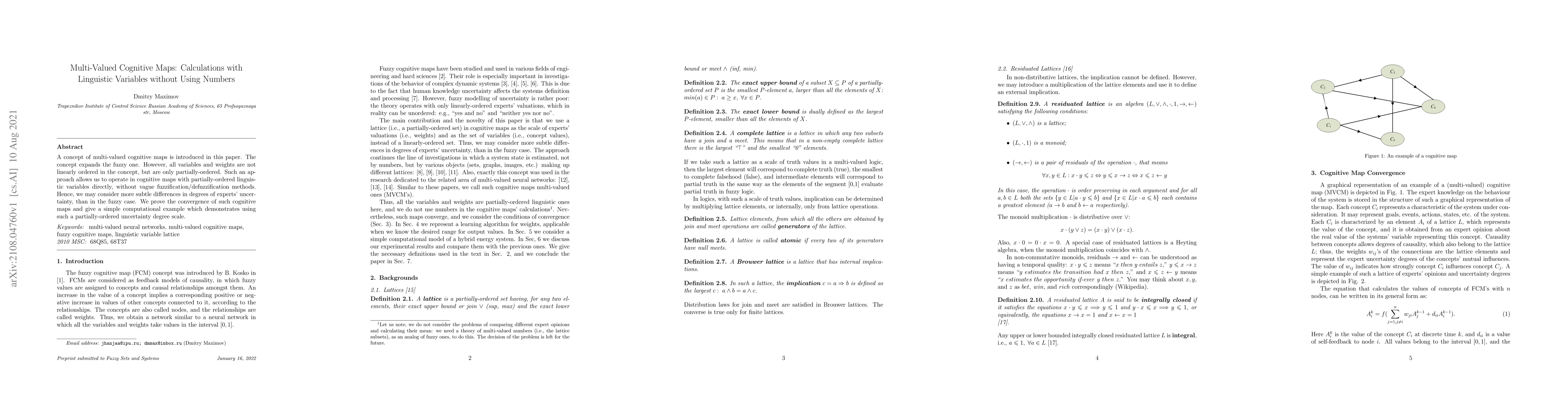 This paper introduces multi-valued cognitive maps that utilize partially-ordered linguistic variables instead of linearly ordered ones, allowing for more nuanced representation of experts' uncertainty without traditional fuzzification/defuzzification. The authors prove the convergence of these maps and provide a computational example.