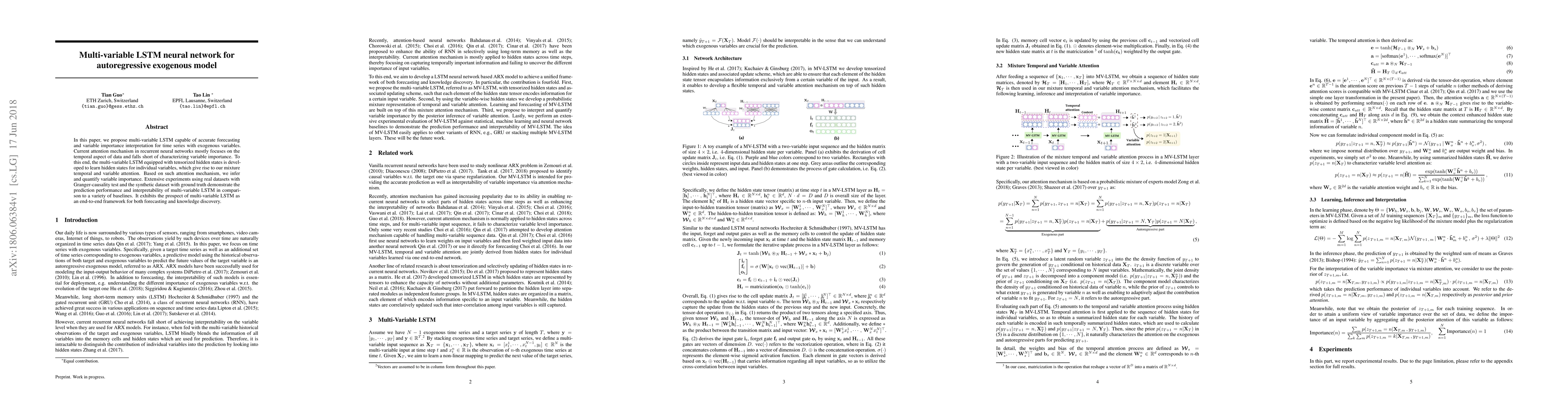 This paper proposes a multi-variable LSTM neural network for forecasting time series data with exogenous variables, also providing variable importance interpretation through an attention mechanism. The model outperforms baselines in prediction performance and offers interpretability.