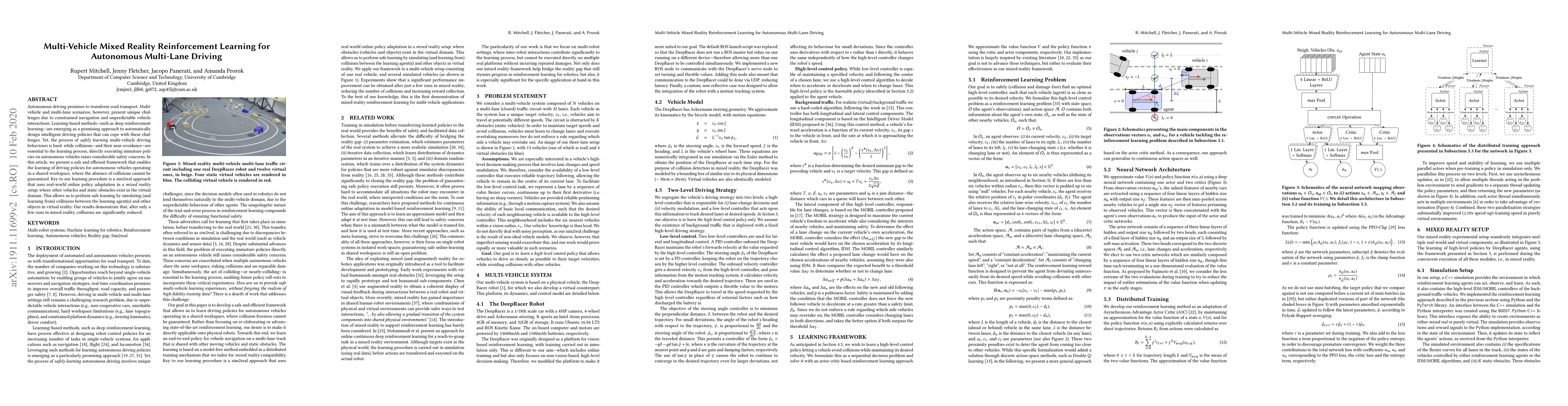 This paper proposes a safe reinforcement learning framework for autonomous multi-vehicle driving in multi-lane scenarios, using a sim2real approach with mixed-reality simulations to safely learn collision avoidance while reducing real-world collision risks.
