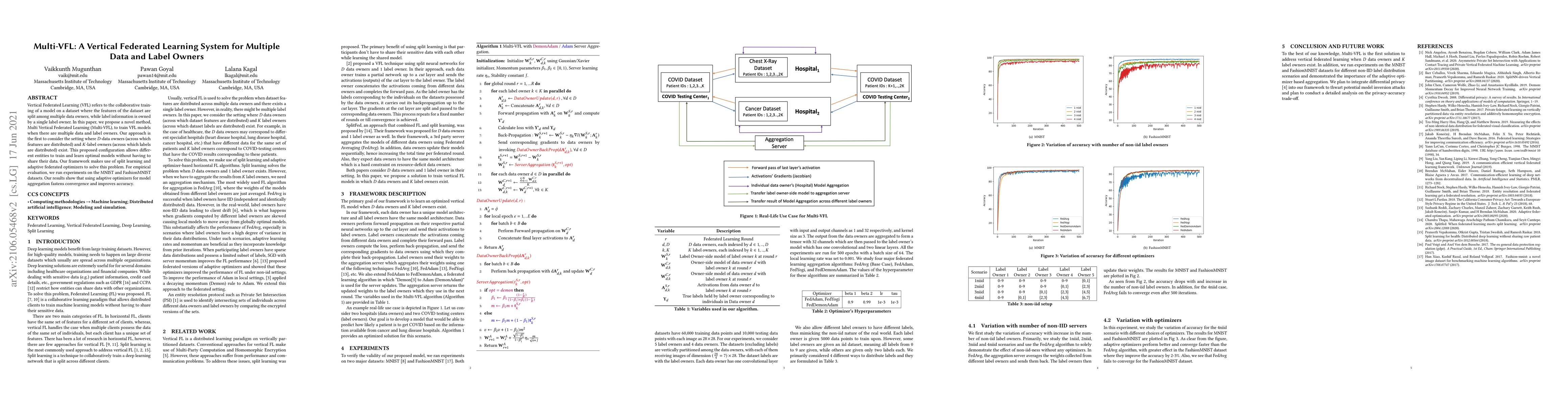 This paper proposes Multi-VFL, a novel method for training Vertical Federated Learning models with multiple data and label owners, leveraging split learning and adaptive federated optimizers to enhance convergence and accuracy without requiring data sharing. Experiments on MNIST and FashionMNIST datasets demonstrate improved performance using adaptive optimizers.