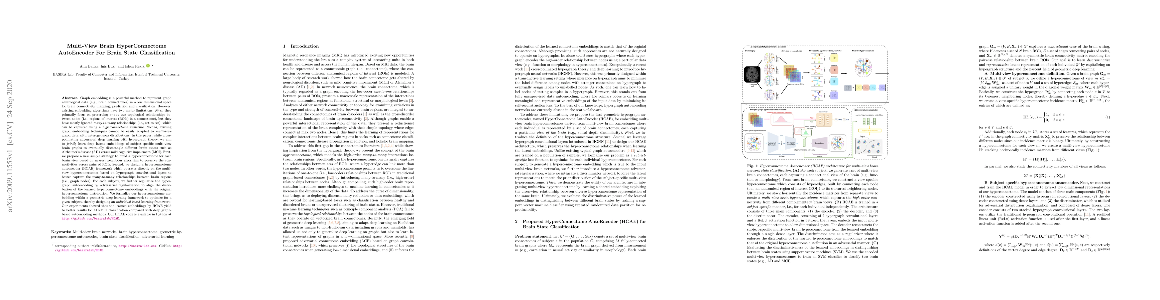 This paper proposes a Hyperconnectome AutoEncoder (HCAE) framework to improve brain state classification by embedding multi-view brain graphs using hypergraph convolutional layers. The HCAE captures many-to-many relationships in brain connectivity and outperforms existing methods in classifying brain states.
