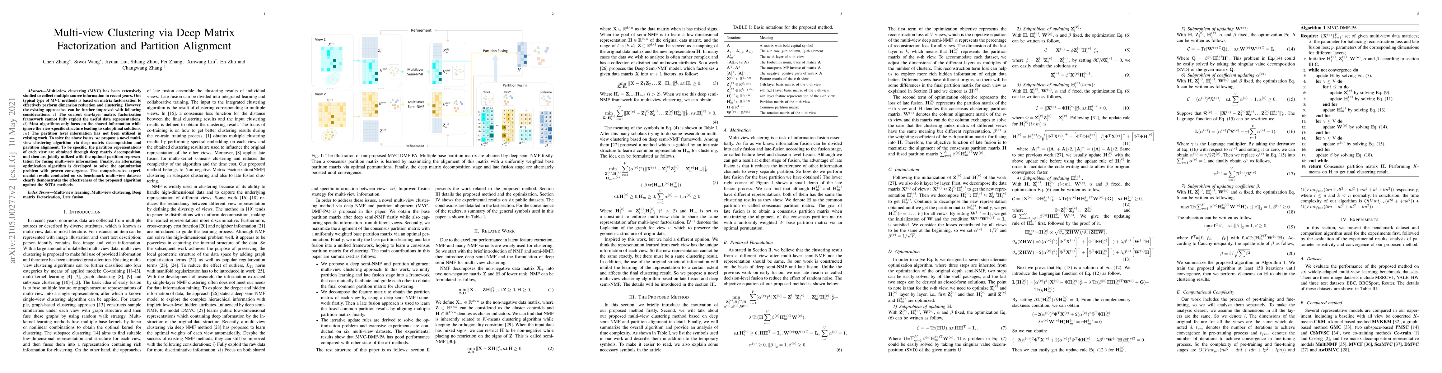 This paper proposes a novel multi-view clustering algorithm that utilizes deep matrix decomposition and partition alignment to enhance data representation, integrate view-specific structures, and leverage partition-level information for improved clustering performance. Experimental results show its effectiveness over state-of-the-art methods.