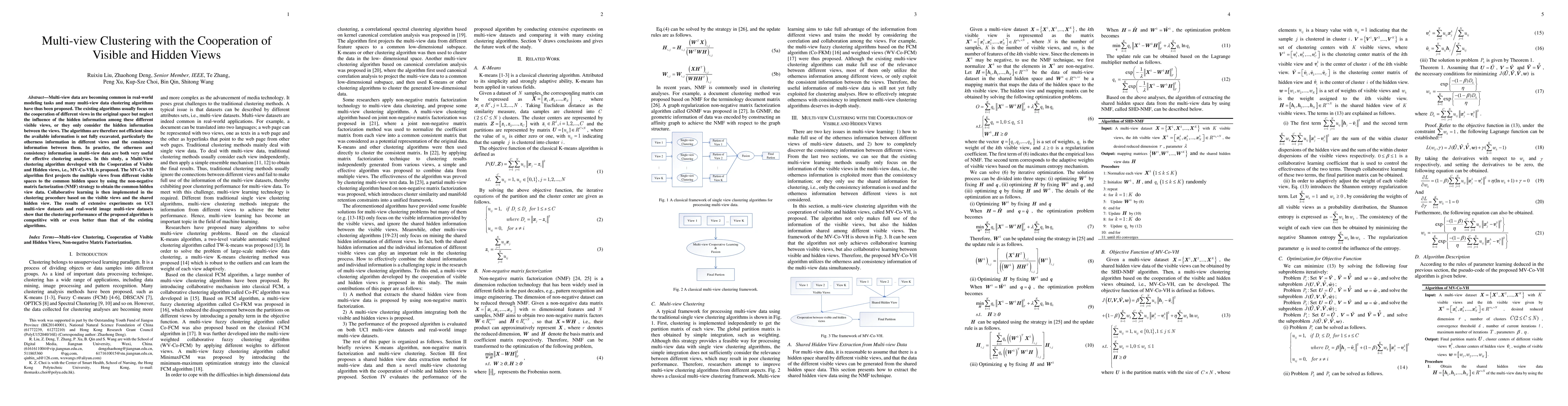 This paper proposes a Multi-View clustering algorithm, MV-Co-VH, which leverages both visible and hidden information across different views to enhance clustering performance. The algorithm uses non-negative matrix factorization to project views into a common hidden space and employs collaborative learning to utilize both otherness and consistency information, achieving competitive clustering results.