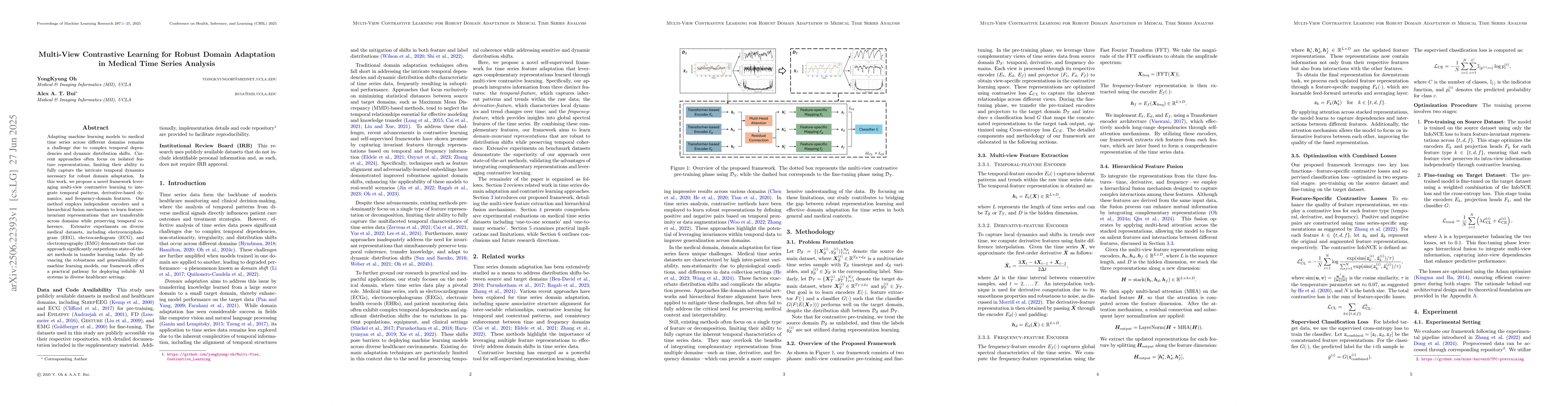 This research introduces a novel framework using multi-view contrastive learning to enhance domain adaptation in medical time series analysis. The method, tested on EEG, ECG, and EMG data, outperforms existing techniques by capturing complex temporal dynamics and distribution shifts, offering improved reliability for AI in healthcare.