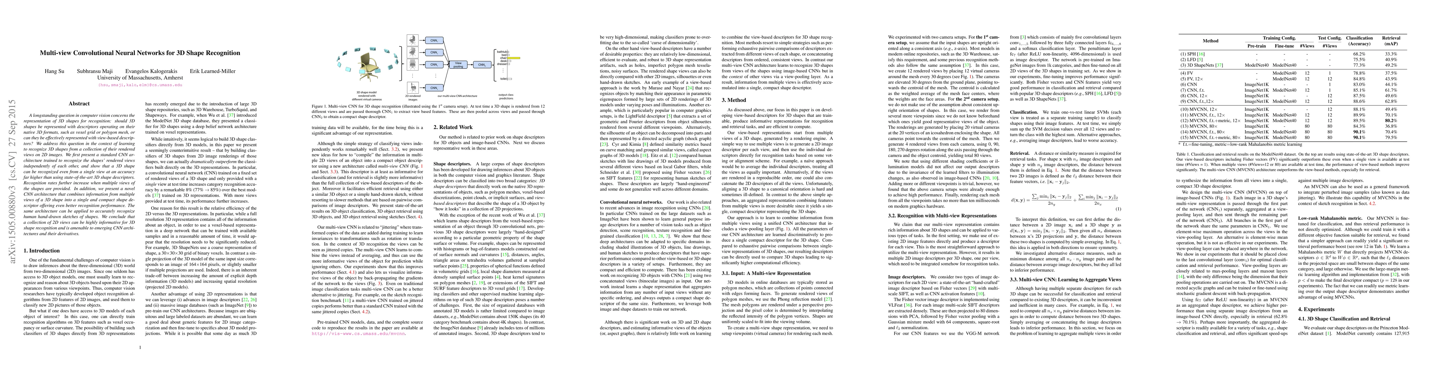 This paper explores the effectiveness of multi-view convolutional neural networks (CNNs) for 3D shape recognition using 2D rendered views. It demonstrates that CNNs can achieve high recognition accuracy from single views and even better from multiple views, outperforming traditional 3D shape descriptors.