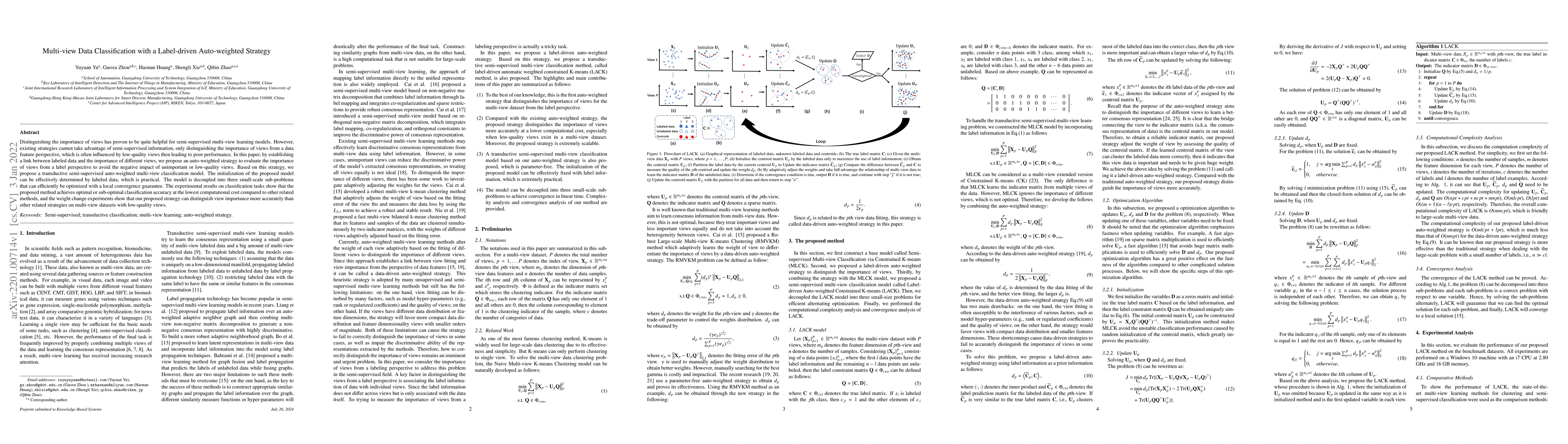 This paper proposes an auto-weighted strategy for multi-view classification that leverages labeled data to assess view importance, avoiding the negative impact of low-quality views. The resulting semi-supervised model achieves optimal classification accuracy with lower computational costs compared to other methods.