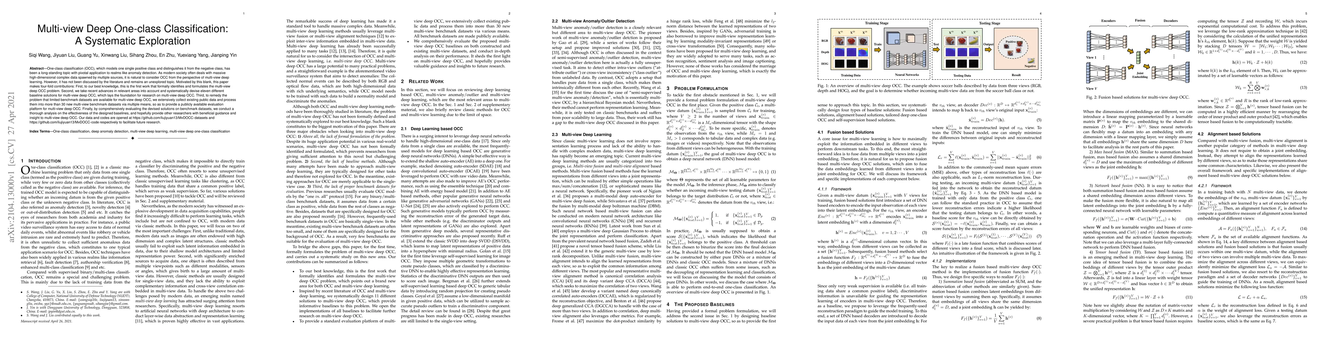 One-class classification (OCC), which models one single positive class and distinguishes it from the negative class, has been a long-standing topic with pivotal application to realms like anomaly detection. As modern society often deals with massive high-dimensional complex data spawned by multiple sources, it is natural to consider OCC from the perspective of multi-view deep learning. However, it has not been discussed by the literature and remains an unexplored topic. Motivated by this blank, this paper makes four-fold contributions: First, to our best knowledge, this is the first work that formally identifies and formulates the multi-view deep OCC problem. Second, we take recent advances in relevant areas into account and systematically devise eleven different baseline solutions for multi-view deep OCC, which lays the foundation for research on multi-view deep OCC. Third, to remedy the problem that limited benchmark datasets are available for multi-view deep OCC, we extensively collect existing public data and process them into more than 30 new multi-view benchmark datasets via multiple means, so as to provide a publicly available evaluation platform for multi-view deep OCC. Finally, by comprehensively evaluating the devised solutions on benchmark datasets, we conduct a thorough analysis on the effectiveness of the designed baselines, and hopefully provide other researchers with beneficial guidance and insight to multi-view deep OCC. Our data and codes are opened at https://github.com/liujiyuan13/MvDOCC-datasets and https://github.com/liujiyuan13/MvDOCC-code respectively to facilitate future research.