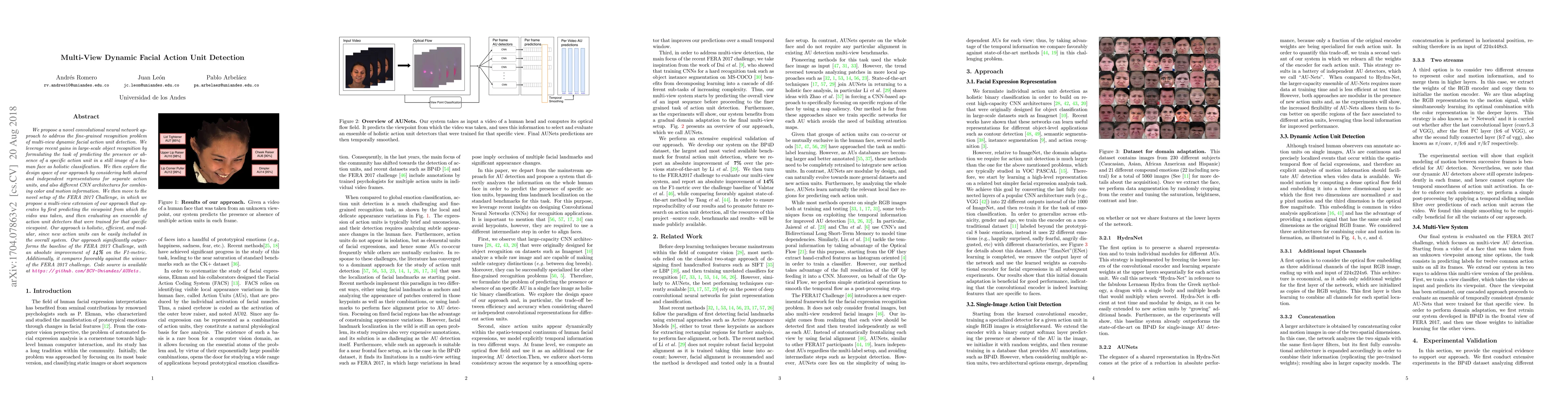 This research introduces a convolutional neural network for detecting dynamic facial action units from multiple viewpoints. The approach combines color and motion information using different CNN architectures and outperforms the FERA 2017 Challenge baseline by 14% on the F1-metric. The method is modular and can easily incorporate new action units. For more details, refer to the code on GitHub.