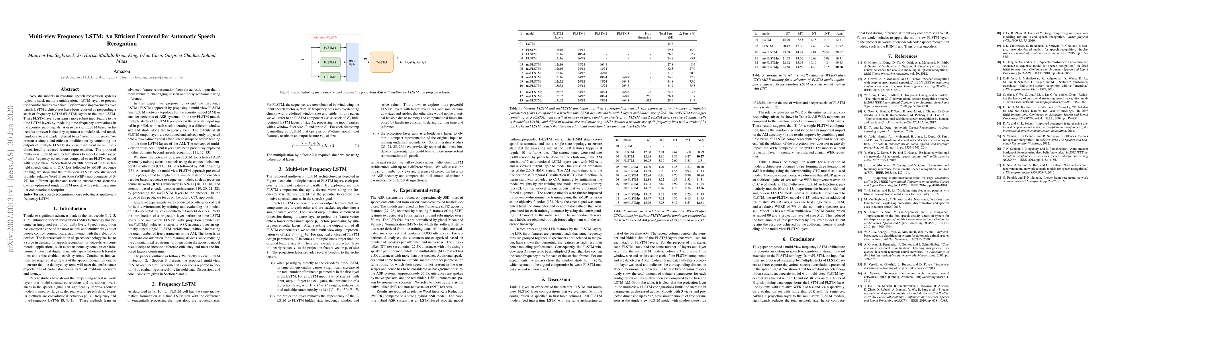 A new speech recognition model combines multiple frequency-LSTM layers with different views to improve performance over existing architectures, achieving 3-7% Word Error Rate improvements in real-world scenarios.
