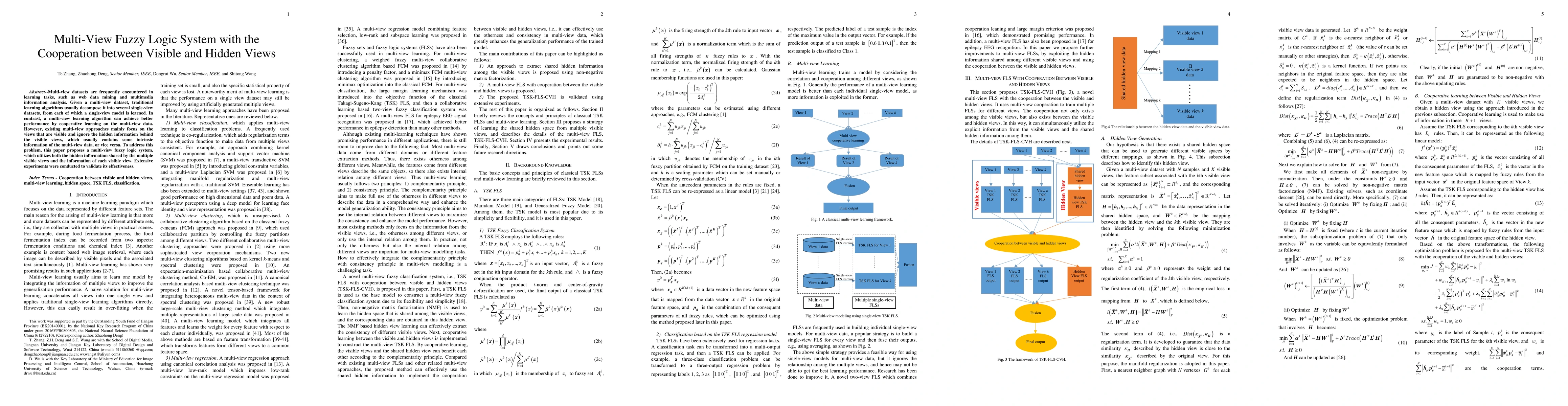 This paper proposes a multi-view fuzzy logic system that leverages both visible and hidden information across views to enhance learning performance in multi-view datasets. Extensive experiments demonstrate its effectiveness in cooperative learning tasks.