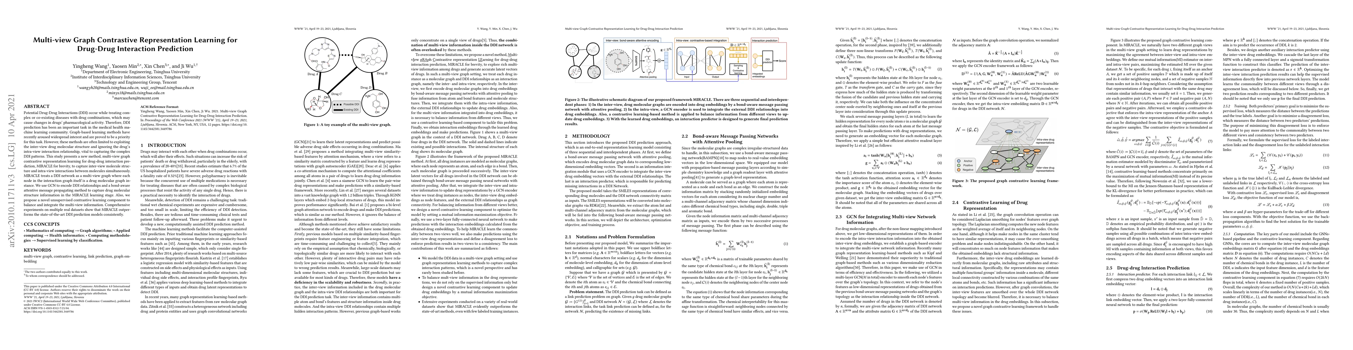This paper introduces MIRACLE, a multi-view graph contrastive representation learning method for drug-drug interaction prediction, which effectively captures both inter-view and intra-view molecular interactions. MIRACLE outperforms existing models on multiple datasets, leveraging GCNs and contrastive learning to encode DDI relationships and drug molecular graphs.