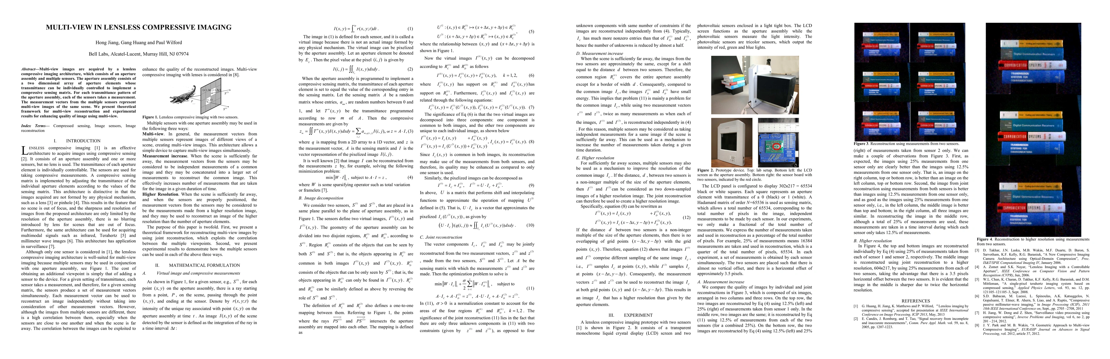 This paper introduces a lensless compressive imaging system using an adjustable aperture and multiple sensors to acquire multi-view images. It presents a theoretical framework for reconstructing multi-view images and demonstrates experimental results showing improved image quality.