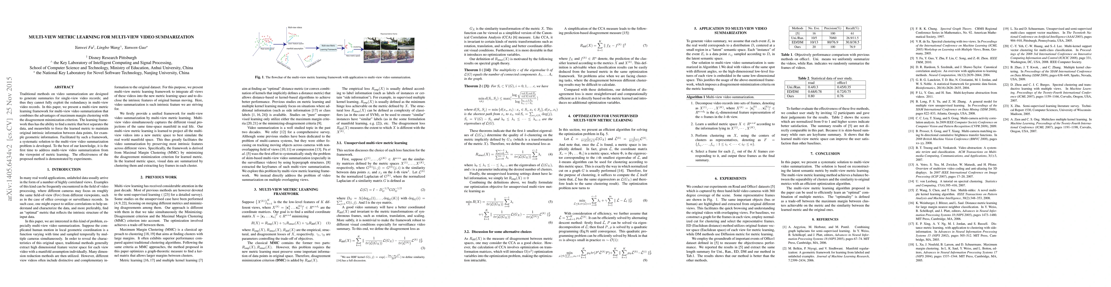 This paper introduces a multi-view metric learning framework for summarizing multi-view video records, combining maximum margin clustering with disagreement minimization to effectively separate and preserve intrinsic data information. Experimental results validate the effectiveness of the proposed approach in multi-view video summarization.
