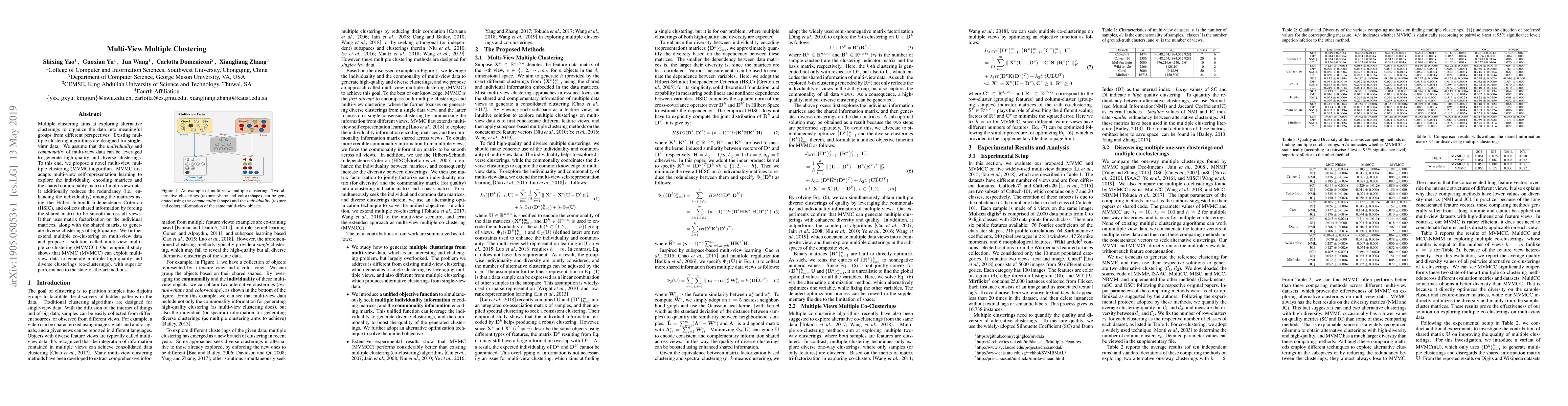 This research is significant as it addresses the underexplored topic of generating multiple clusterings from multi-view data, which encompasses both multi-view clustering and multiple clustering. The proposed methods outperform existing solutions, demonstrating the effectiveness of leveraging the diversity and commonality of multi-view data for generating diverse clusterings with high quality.