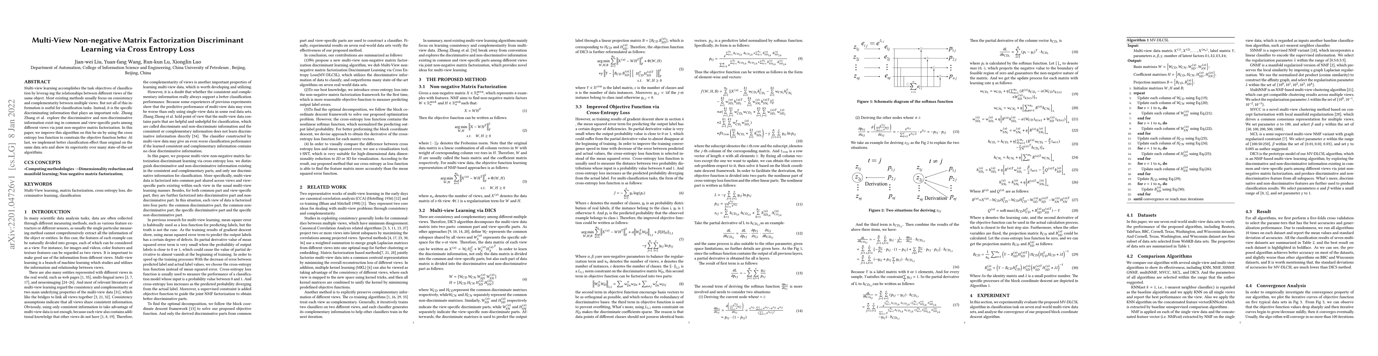This paper improves a multi-view learning algorithm by using cross entropy loss to better constrain the objective function, achieving superior classification effects over state-of-the-art algorithms.