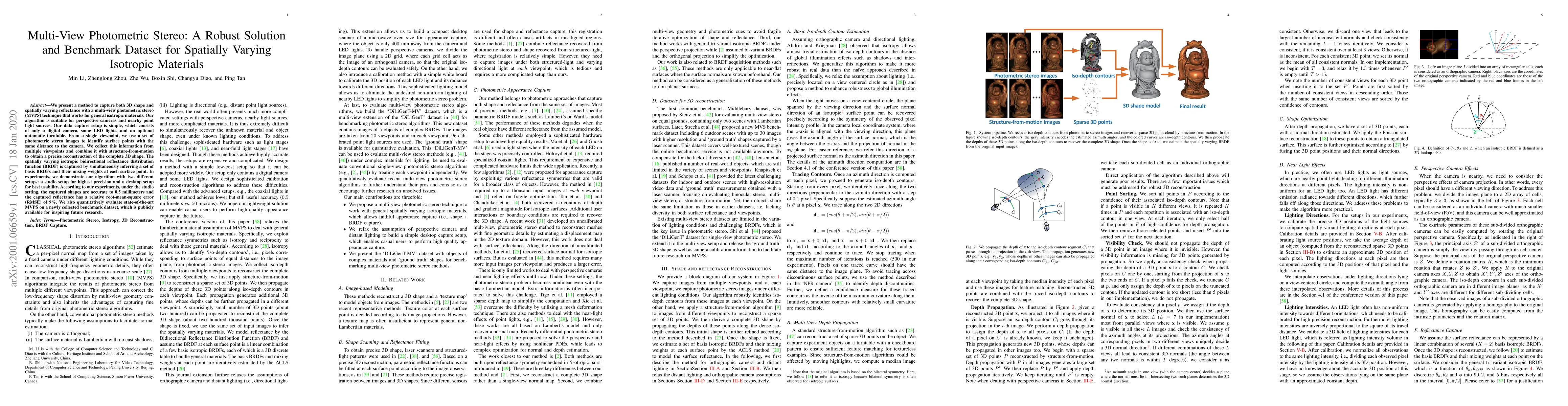 We present a method to capture both 3D shape and spatially varying reflectance with a multi-view photometric stereo (MVPS) technique that works for general isotropic materials. Our algorithm is suitable for perspective cameras and nearby point light sources. Our data capture setup is simple, which consists of only a digital camera, some LED lights, and an optional automatic turntable. From a single viewpoint, we use a set of photometric stereo images to identify surface points with the same distance to the camera. We collect this information from multiple viewpoints and combine it with structure-from-motion to obtain a precise reconstruction of the complete 3D shape. The spatially varying isotropic bidirectional reflectance distribution function (BRDF) is captured by simultaneously inferring a set of basis BRDFs and their mixing weights at each surface point. In experiments, we demonstrate our algorithm with two different setups: a studio setup for highest precision and a desktop setup for best usability. According to our experiments, under the studio setting, the captured shapes are accurate to 0.5 millimeters and the captured reflectance has a relative root-mean-square error (RMSE) of 9%. We also quantitatively evaluate state-of-the-art MVPS on a newly collected benchmark dataset, which is publicly available for inspiring future research.