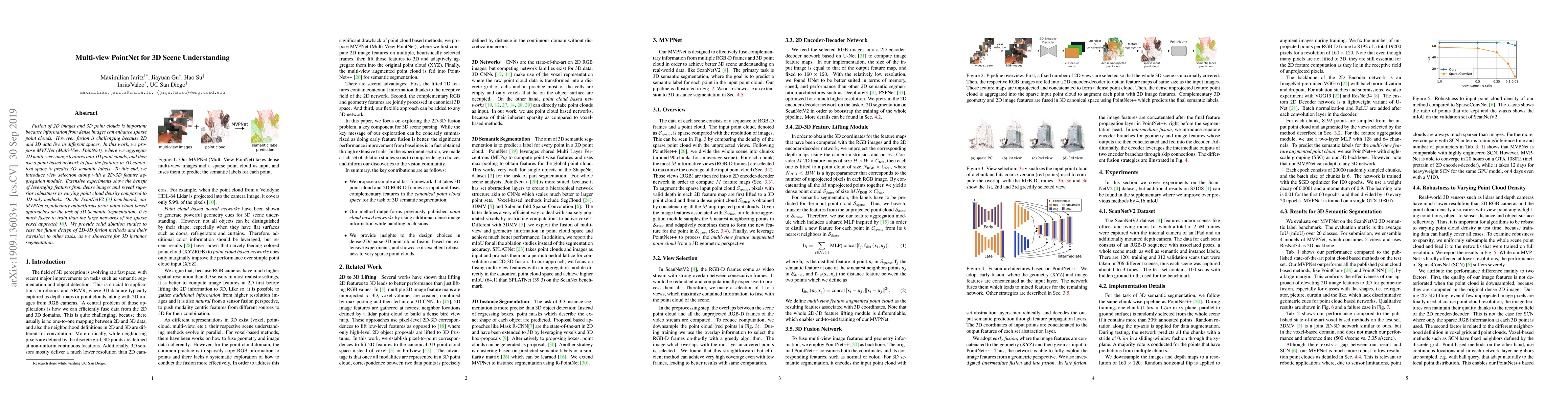 A new method called MVPNet improves 3D scene understanding by fusing 2D image features with sparse point clouds, outperforming previous methods on tasks like 3D Semantic Segmentation.