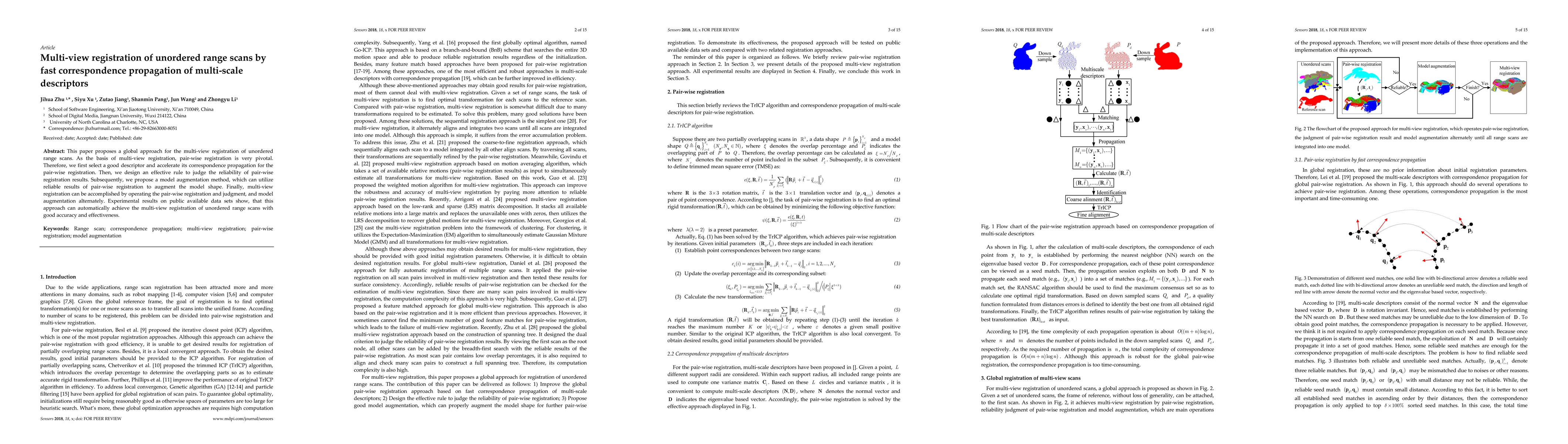 A method for multi-view registration of unordered range scans is proposed using fast correspondence propagation and model augmentation, achieving good accuracy and effectiveness in experimental results.