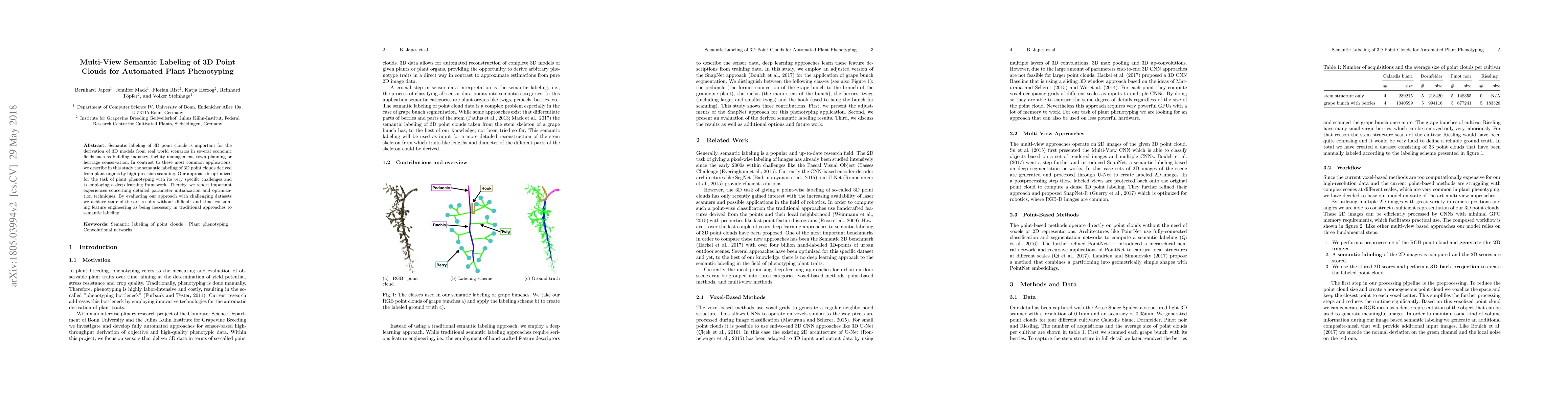This paper presents a deep learning framework for semantic labeling of 3D point clouds derived from plant organs, optimized for plant phenotyping. The approach achieves state-of-the-art results without requiring traditional feature engineering, relying instead on detailed parameter initialization and optimization techniques.