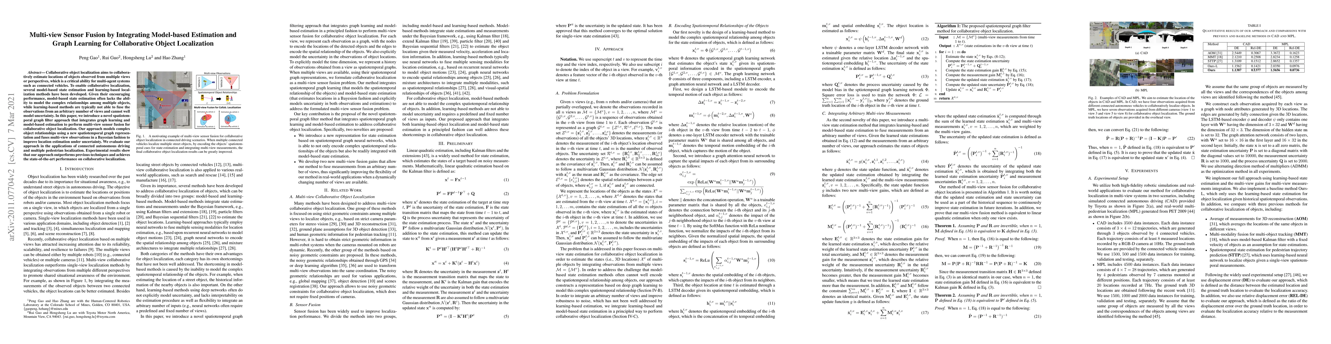 This paper proposes a novel spatiotemporal graph filter integrating model-based estimation and graph learning for multi-view sensor fusion in collaborative object localization, achieving state-of-the-art performance in connected autonomous driving and pedestrian localization.