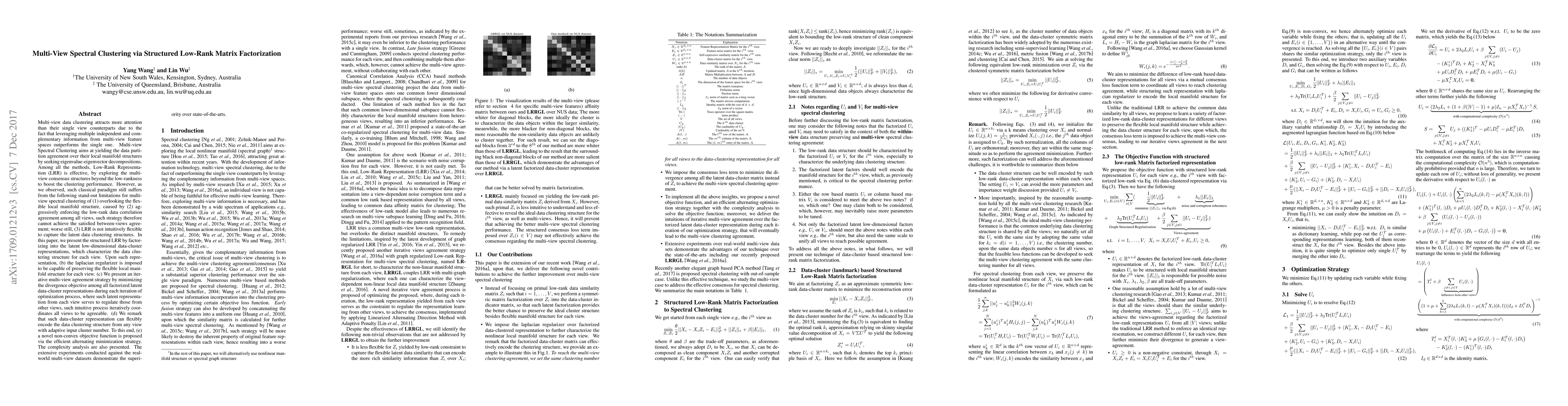 This paper proposes a structured low-rank matrix factorization approach for multi-view spectral clustering to better capture flexible local manifold structures and data clustering agreements. The method iteratively minimizes divergence among factorized latent representations, demonstrating superior performance on multi-view datasets compared to state-of-the-art methods.