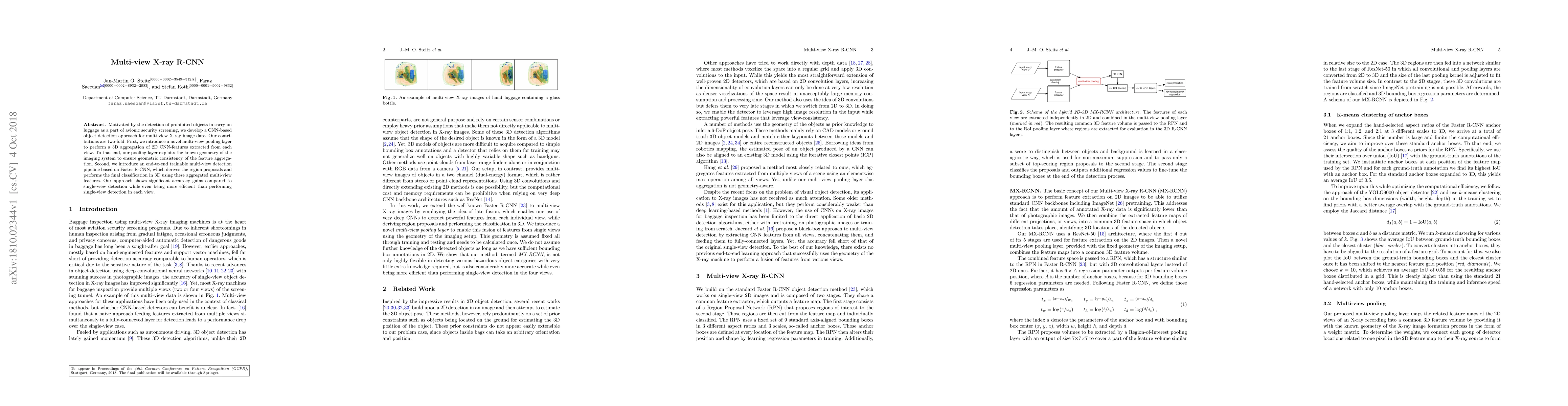 Motivated by the detection of prohibited objects in carry-on luggage as a part of avionic security screening, we develop a CNN-based object detection approach for multi-view X-ray image data. Our contributions are two-fold. First, we introduce a novel multi-view pooling layer to perform a 3D aggregation of 2D CNN-features extracted from each view. To that end, our pooling layer exploits the known geometry of the imaging system to ensure geometric consistency of the feature aggregation. Second, we introduce an end-to-end trainable multi-view detection pipeline based on Faster R-CNN, which derives the region proposals and performs the final classification in 3D using these aggregated multi-view features. Our approach shows significant accuracy gains compared to single-view detection while even being more efficient than performing single-view detection in each view.