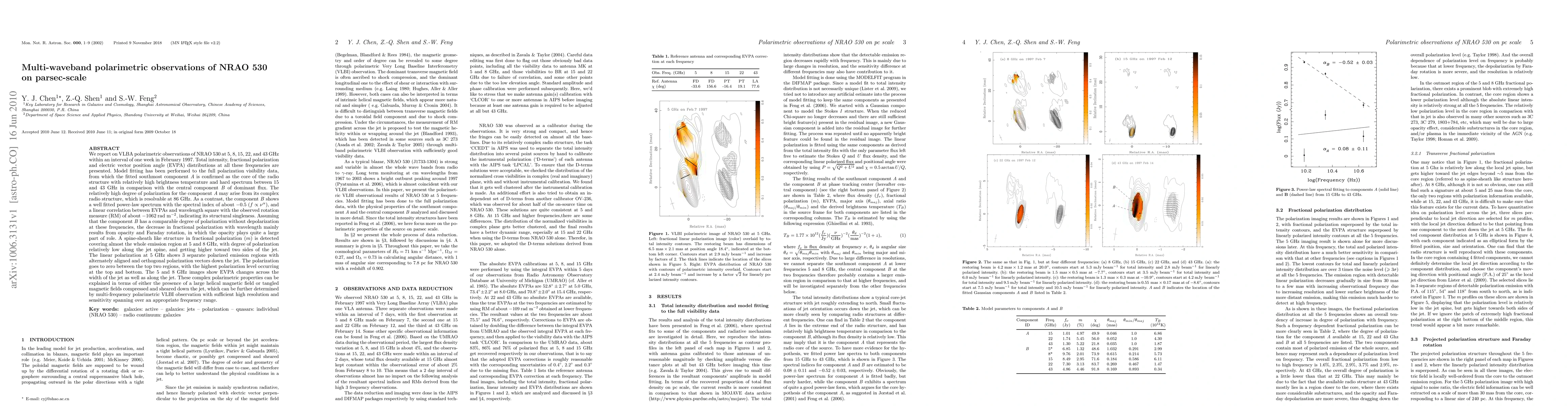 We report on multi-bands VLBA polarimetric observations of NRAO 530 in February 1997. Total intensity, EVPA distributions at all these frequencies are presented. Model fitting has been performed, from which the fitted southmost component A is confirmed as the core of the radio structure with relatively high brightness temperature and hard spectrum between 15 and 43 GHz in comparison with the central component B of dominant flux. The relatively high degree of polarization for the component A may arise from its complex radio structure, which is resolvable at 86 GHz. As a contrast, the component B shows a well fitted power-law spectrum with the spectral index of about -0.5, and a linear correlation between EVPAs and wavelength square with the observed RM of about -1062 rad m^{-2}, indicating its structural singleness. Assuming that the component B has a comparable degree of polarization without depolarization at these frequencies, the decrease in fractional polarization with wavelength mainly results from opacity and Faraday rotation, in which the opacity plays quite a large part of role. A spine-sheath like structure in fractional polarization is detected covering almost the whole emission region at 5 and 8 GHz. The linear polarization at 5 GHz shows 3 separate polarized emission regions with alternately aligned and orthogonal polarization vectors down the jet. The polarization goes to zero between the top two regions, with the highest polarization level occurring at the top and bottom. The 5 and 8 GHz images show EVPA changes across the width of the jet as well as along the jet. These complex polarimetric properties can be explained in terms of either the presence of a large helical magnetic field or tangled magnetic fields compressed and sheared down the jet.