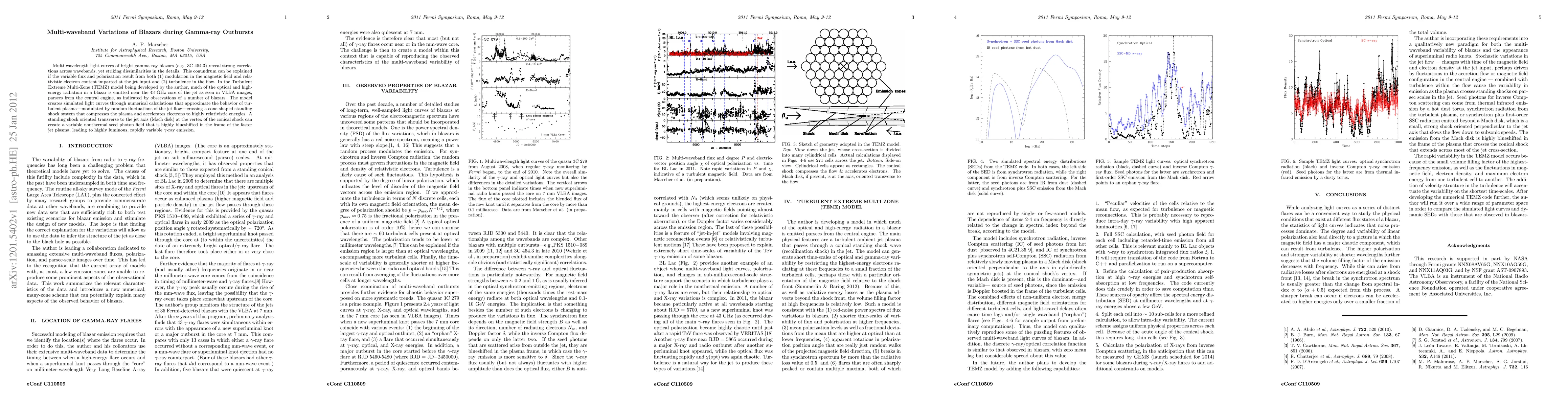 Multi-wavelength light curves of bright gamma-ray blazars (e.g., 3C 454.3) reveal strong correlations across wavebands, yet striking dissimilarities in the details. This conundrum can be explained if the variable flux and polarization result from both (1) modulation in the magnetic field and relativistic electron content imparted at the jet input and (2) turbulence in the flow. In the Turbulent Extreme Multi-Zone (TEMZ) model being developed by the author, much of the optical and high-energy radiation in a blazar is emitted near the 43 GHz core of the jet as seen in VLBA images, parsecs from the central engine, as indicated by observations of a number of blazars. The model creates simulated light curves through numerical calculations that approximate the behavior of turbulent plasma - modulated by random fluctuations of the jet flow - crossing a cone-shaped standing shock system that compresses the plasma and accelerates electrons to highly relativistic energies. A standing shock oriented transverse to the jet axis (Mach disk) at the vertex of the conical shock can create a variable nonthermal seed photon field that is highly blueshifted in the frame of the faster jet plasma, leading to highly luminous, rapidly variable gamma-ray emission.