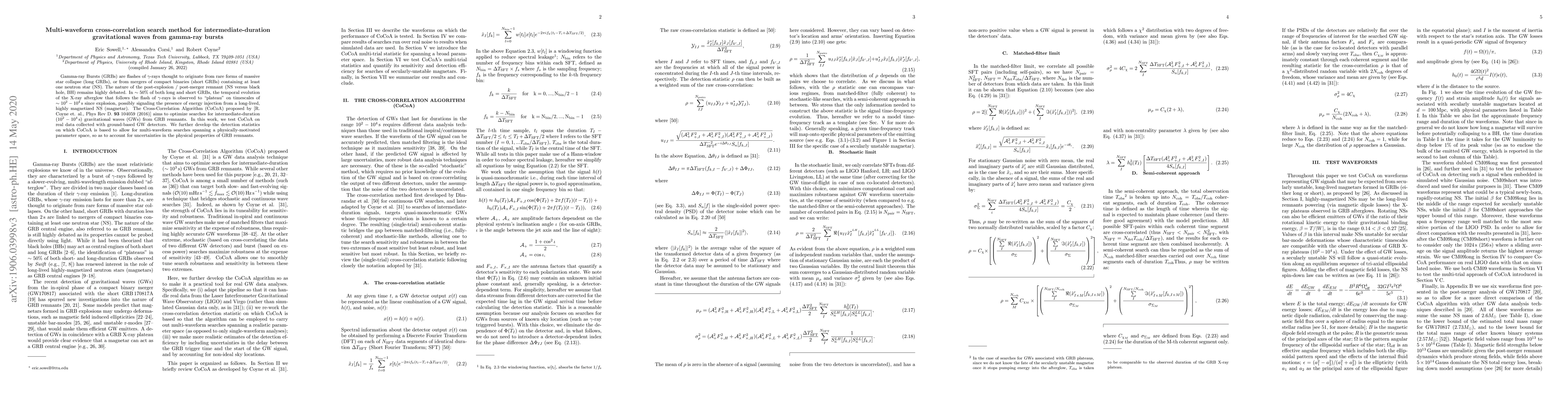 Gamma-ray Bursts (GRBs) are flashes of gamma-rays thought to originate from rare forms of massive star collapse (long GRBs), or from mergers of compact binaries (short GRBs) containing at least one neutron star (NS). The nature of the post-explosion / post-merger remnant (NS versus black hole, BH) remains highly debated. In ~50% of both long and short GRBs, the temporal evolution of the X-ray afterglow that follows the flash of gamma-rays is observed to "plateau" on timescales of 100-10000 s since explosion, possibly signaling the presence of energy injection from a long-lived, highly magnetized NS (magnetar). The Cross-Correlation Algorithm (CoCoA) proposed by [R. Coyne et. al., (2016)] aims to optimize searches for intermediate-duration (100-10000s) gravitational waves (GWs) from GRB remnants. In this work, we test CoCoA on real data collected with ground-based GW detectors. We further develop the detection statistics on which CoCoA is based to allow for multi-waveform searches spanning a physically-motivated parameter space, so as to account for uncertainties in the physical properties of GRB remnants.