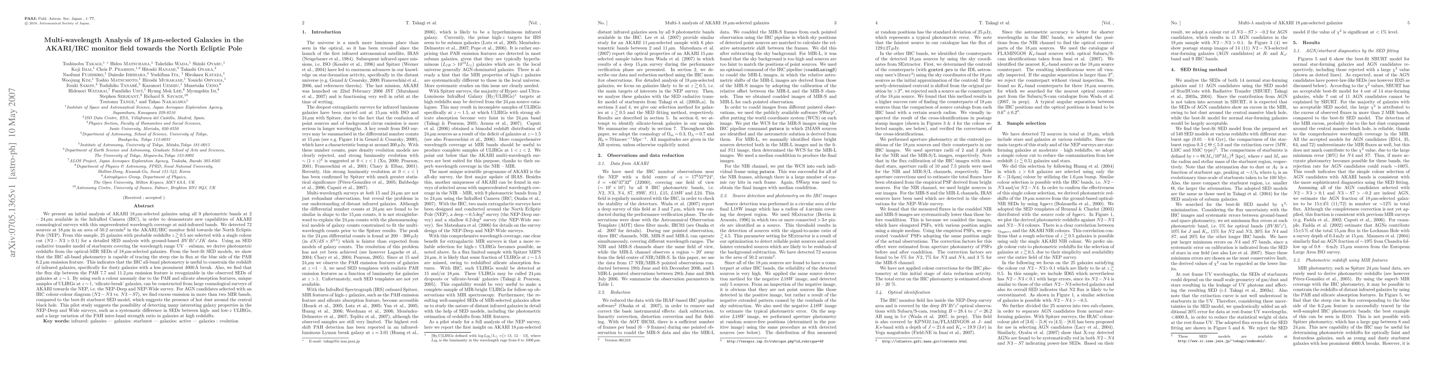 This study analyzes 18µm-selected galaxies from the AKARI/IRC survey towards the North Ecliptic Pole, detecting 72 sources and selecting 25 galaxies for detailed SED analysis. The research demonstrates the capability of AKARI's all-band photometry to trace the PAH emission features, enabling the identification of unique galaxy types such as ULIRGs at z~1, and suggesting potential for detecting systematic differences in SEDs and variations in PAH strength ratios in high-redshift galaxies.