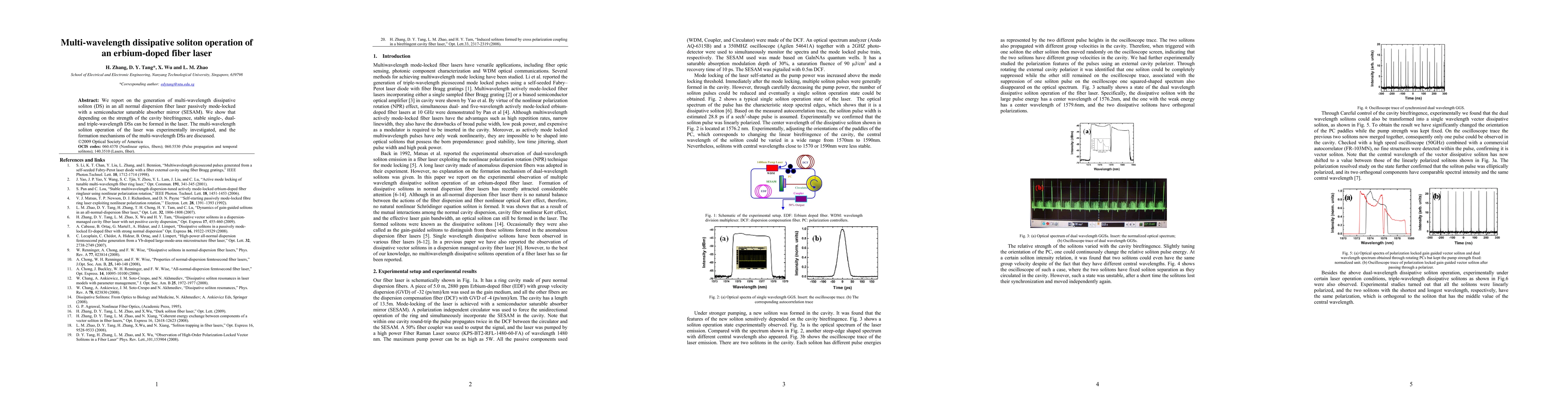 This paper reports on the generation of multi-wavelength dissipative solitons in an erbium-doped fiber laser mode-locked with a SESAM, demonstrating stable single-, dual-, and triple-wavelength solitons based on cavity birefringence, and discusses the underlying formation mechanisms.