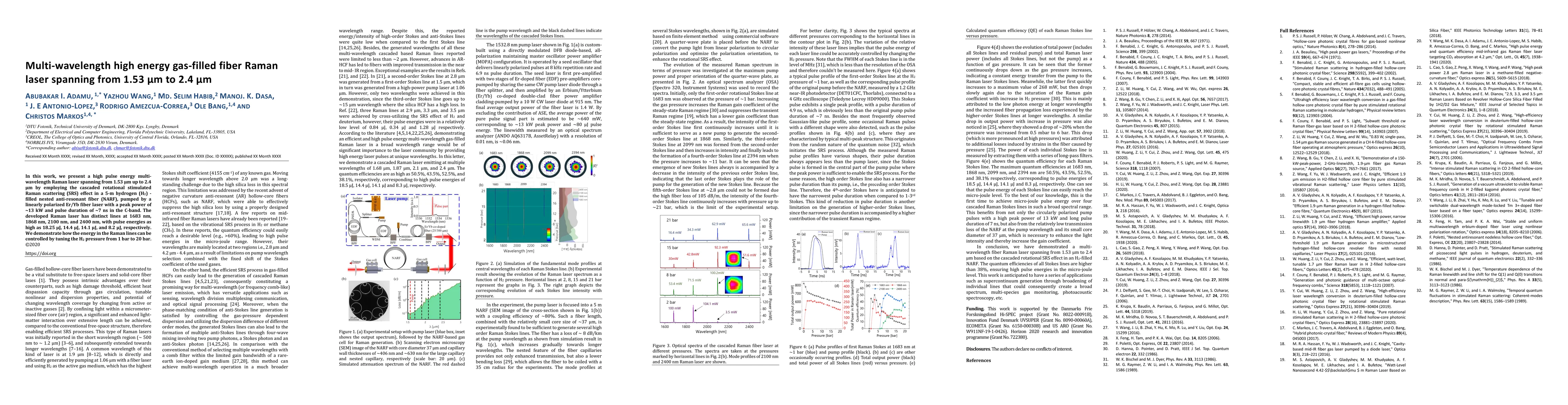 This paper introduces a high pulse energy, multi-wavelength Raman laser operating from 1.53 to 2.4 um using cascaded rotational SRS in a hydrogen-filled nested anti-resonant fiber, achieving distinct Raman lines at 1683 nm, 1868 nm, 2100 nm, and 2400 nm, with controllable pulse energies by adjusting hydrogen pressure.