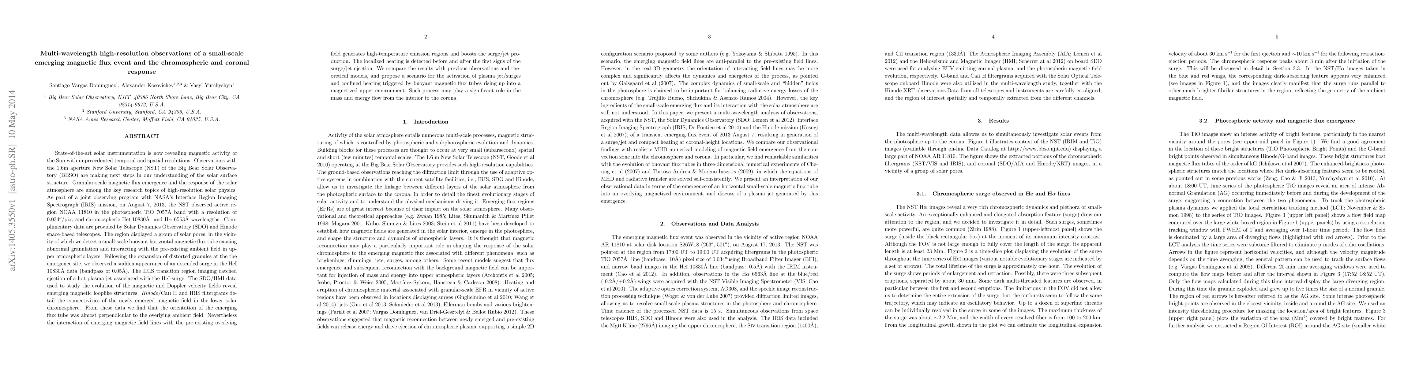 This paper uses high-resolution observations from the New Solar Telescope and NASA's IRIS mission to study a small-scale magnetic flux emergence event, revealing its interaction with the pre-existing magnetic field and its impact on the chromosphere and corona, including the formation of plasma jets and surges. The findings suggest that such magnetic interactions can drive localized heating and contribute to mass and energy transport in the solar atmosphere.