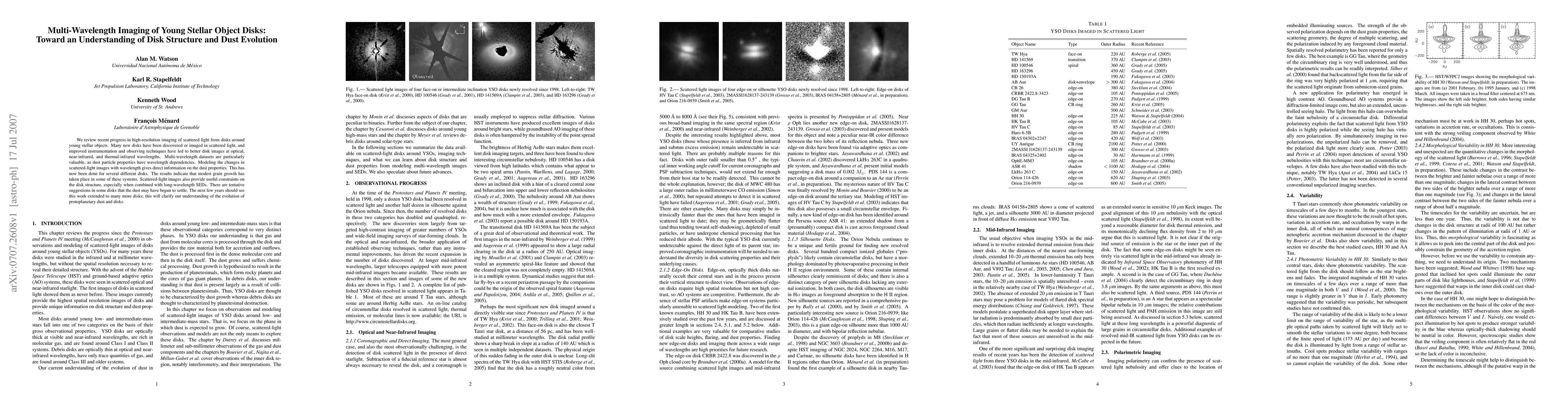 This paper reviews advancements in high-resolution imaging of young stellar object disks, revealing significant grain growth and potential dust settling in some systems. Multi-wavelength scattered-light imaging provides crucial insights into dust properties and disk structure, paving the way for future studies on protoplanetary disk evolution.