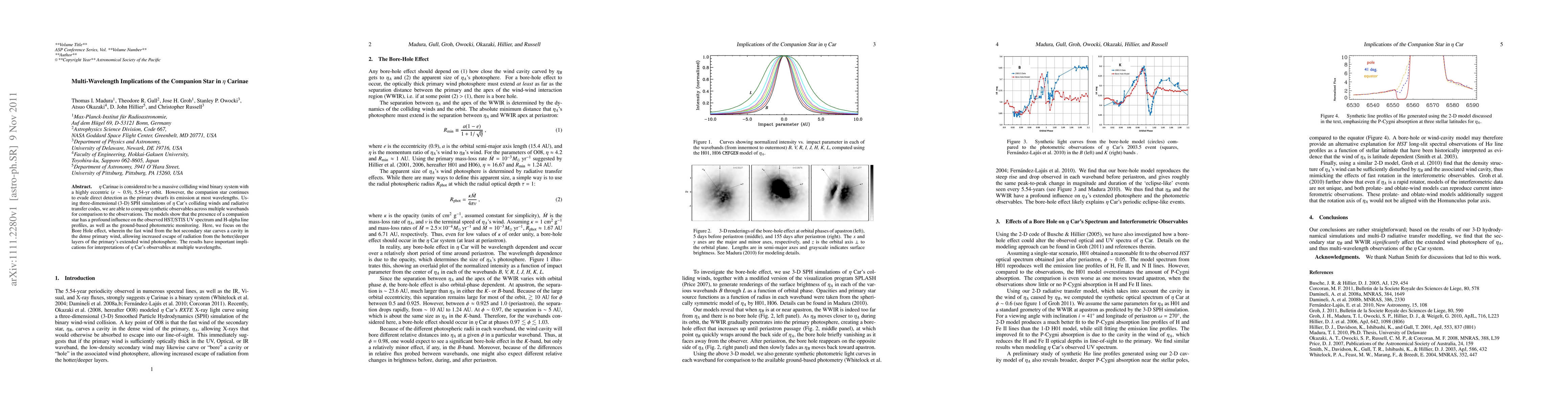 Eta Carinae is considered to be a massive colliding wind binary system with a highly eccentric (e \sim 0.9), 5.54-yr orbit. However, the companion star continues to evade direct detection as the primary dwarfs its emission at most wavelengths. Using three-dimensional (3-D) SPH simulations of Eta Car's colliding winds and radiative transfer codes, we are able to compute synthetic observables across multiple wavebands for comparison to the observations. The models show that the presence of a companion star has a profound influence on the observed HST/STIS UV spectrum and H-alpha line profiles, as well as the ground-based photometric monitoring. Here, we focus on the Bore Hole effect, wherein the fast wind from the hot secondary star carves a cavity in the dense primary wind, allowing increased escape of radiation from the hotter/deeper layers of the primary's extended wind photosphere. The results have important implications for interpretations of Eta Car's observables at multiple wavelengths.