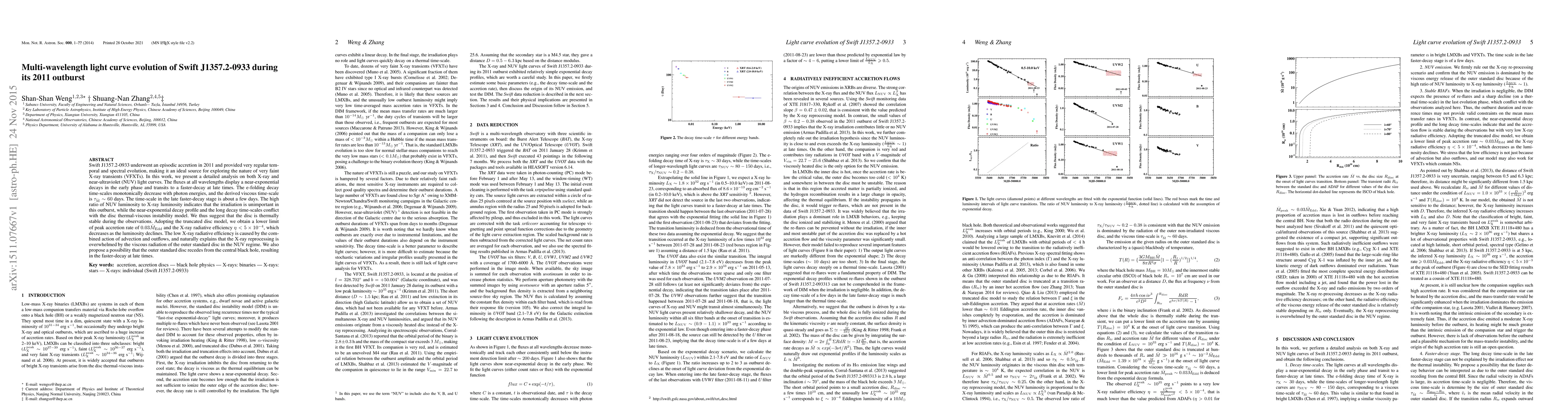 Swift J1357.2-0933 underwent an episodic accretion in 2011 and provided very regular temporal and spectral evolution, making it an ideal source for exploring the nature of very faint X-ray transients (VFXTs). In this work, we present a detailed analysis on both X-ray and near-ultraviolet (NUV) light curves. The fluxes at all wavelengths display a near-exponential decays in the early phase and transits to a faster-decay at late times. The e-folding decay time-scales monotonically decrease with photon energies, and the derived viscous time-scale is $\tau_{\rm \dot{M}} \sim 60$ days. The time-scale in the late faster-decay stage is about a few days. The high ratio of NUV luminosity to X-ray luminosity indicates that the irradiation is unimportant in this outburst, while the near-exponential decay profile and the long decay time-scales conflict with the disc thermal-viscous instability model. We thus suggest that the disc is thermally stable during the observations. Adopting the truncated disc model, we obtain a lower limit of peak accretion rate of $0.03 \dot{M}_{\rm Edd}$ and the X-ray radiative efficiency $\eta < 5\times10^{-4}$, which decreases as the luminosity declines. The low X-ray radiative efficiency is caused by the combined action of advection and outflows, and naturally explains that the X-ray reprocessing is overwhelmed by the viscous radiation of the outer standard disc in the NUV regime. We also propose a possibility that the outer standard disc recedes from the central black hole, resulting in the faster-decay at late times.