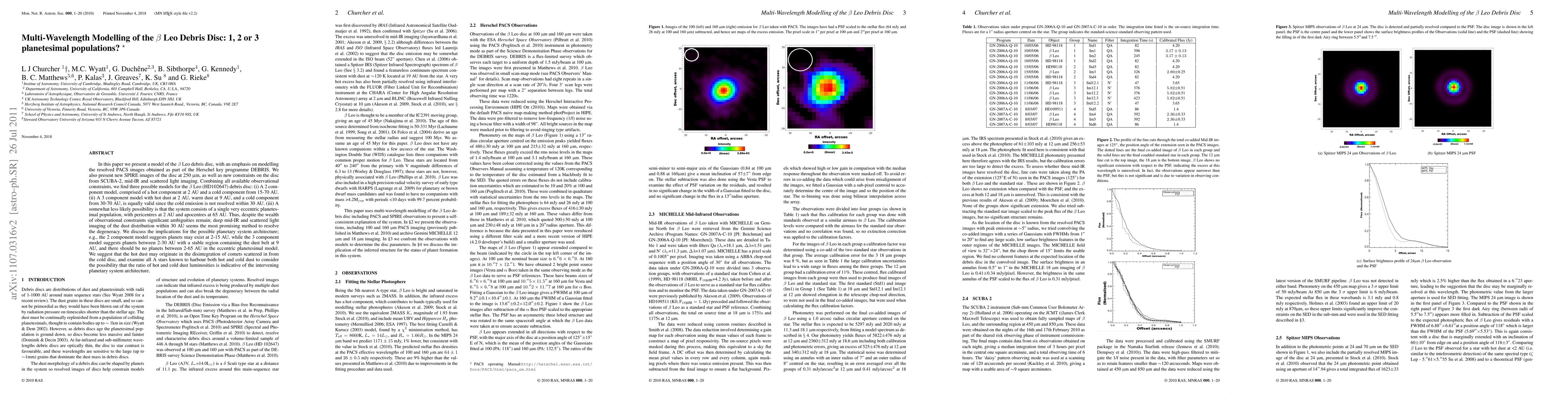 In this paper we present a model of the Beta Leo debris disc, with an emphasis on modelling the resolved PACS images obtained as part of the Herschel key programme DEBRIS. We also present new SPIRE images of the disc at 250 microns, as well as new constraints on the disc from SCUBA-2, mid-IR and scattered light imaging. Combining all available observational constraints, we find three possible models for the Beta Leo (HD102647) debris disc: (i) A 2 component model, comprised of a hot component at 2 AU and a cold component from 15-70 AU. (ii) A 3 component model with hot dust at 2 AU, warm dust at 9 AU, and a cold component from 30-70 AU, is equally valid since the cold emission is not resolved within 30 AU. (iii) A somewhat less likely possibility is that the system consists of a single very eccentric planetesimal population, with pericentres at 2 AU and apocentres at 65 AU. Thus, despite the wealth of observational constraints significant ambiguities remain; deep mid-IR and scattered light imaging of the dust distribution within 30 AU seems the most promising method to resolve the degeneracy. We discuss the implications for the possible planetary system architecture; e.g., the 2 component model suggests planets may exist at 2-15 AU, while the 3 component model suggests planets between 2-30 AU with a stable region containing the dust belt at 9 AU, and there should be no planets between 2-65 AU in the eccentric planetesimal model. We suggest that the hot dust may originate in the disintegration of comets scattered in from the cold disc, and examine all A stars known to harbour both hot and cold dust to consider the possibility that the ratio of hot and cold dust luminosities is indicative of the intervening planetary system architecture.