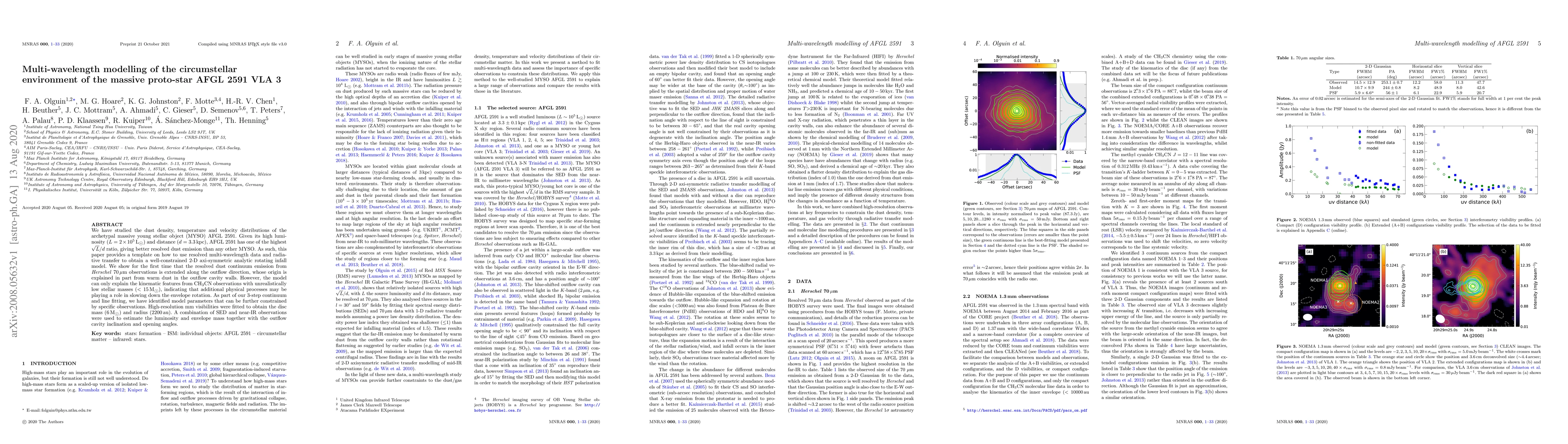 This study models the circumstellar environment of a massive young stellar object (AFGL 2591) using multi-wavelength data, revealing details about dust density, temperature, and velocity distributions. The model provides insights into the outflow direction and stellar mass, highlighting the need for additional physical processes to explain the observed kinematic features.