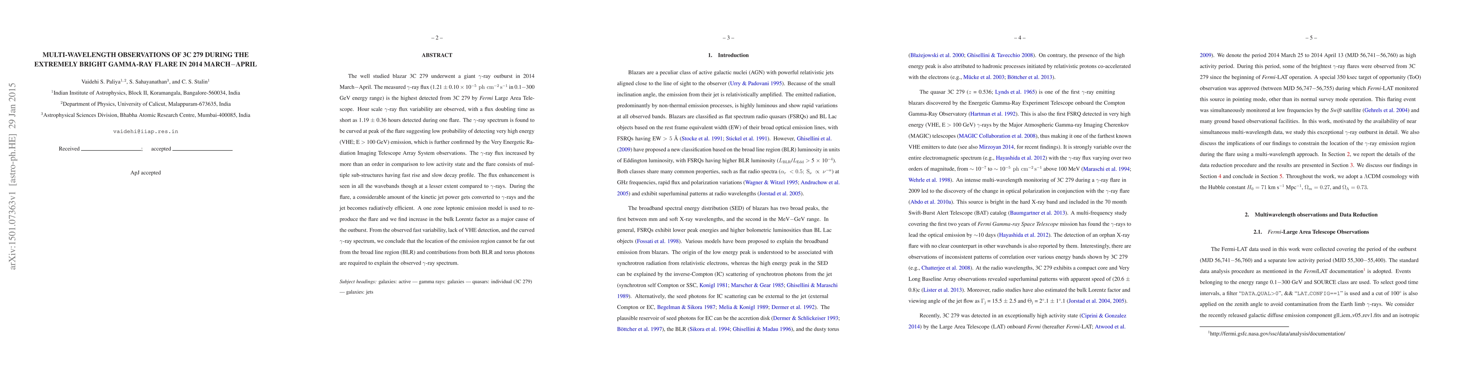 This study reports on multi-wavelength observations of the blazar 3C 279 during its record-breaking gamma-ray flare in March-April 2014, revealing significant flux variability and a curved gamma-ray spectrum indicative of a radiatively efficient jet. The flare's fast rise and slow decay profile suggests contributions from both broad line region and torus photons.