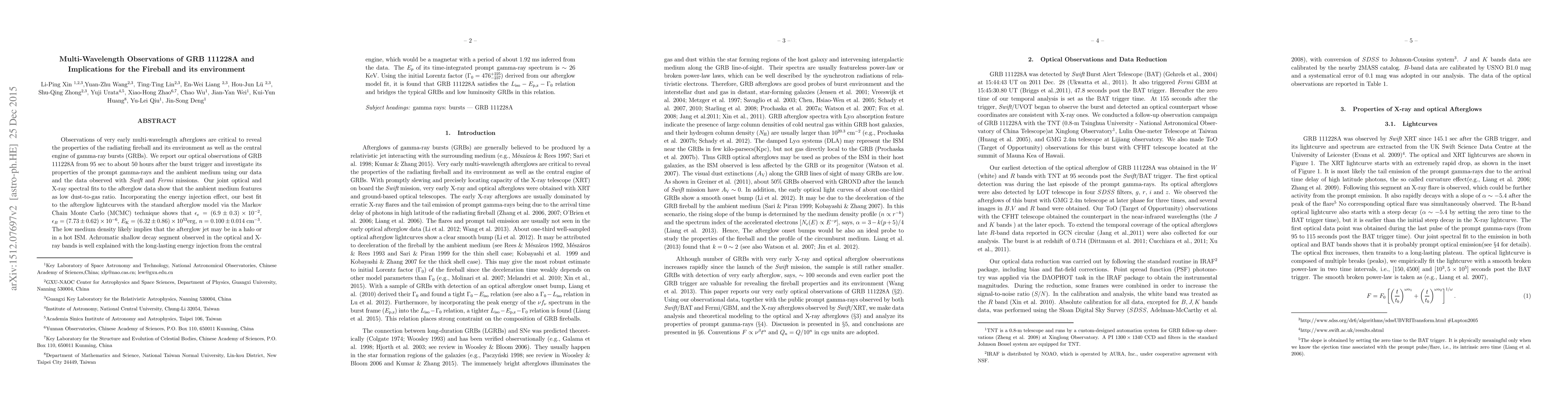 Observations of very early multi-wavelength afterglows are critical to reveal the properties of the radiating fireball and its environment as well as the central engine of gamma-ray bursts (GRBs). We report our optical observations of GRB 111228A from 95 sec to about 50 hours after the burst trigger and investigate its properties of the prompt gamma-rays and the ambient medium using our data and the data observed with {\em Swift} and {\em Fermi} missions. Our joint optical and X-ray spectral fits to the afterglow data show that the ambient medium features as low dust-to-gas ratio. Incorporating the energy injection effect, our best fit to the afterglow lightcurves with the standard afterglow model via the Markov Chain Monte Carlo (MCMC) technique shows that $\epsilon_e=(6.9\pm 0.3)\times 10^{-2}$, $\epsilon_B=(7.73\pm 0.62)\times 10^{-6}$, $E_{\rm K}=(6.32\pm 0.86)\times 10^{53}\rm erg$, $n=0.100\pm 0.014$ cm$^{-3}$. The low medium density likely implies that the afterglow jet may be in a halo or in a hot ISM. Achromatic shallow decay segment observed in the optical and X-ray bands is well explained with the long-lasting energy injection from the central engine, which would be a magnetar with a period of about 1.92 ms inferred from the data. The $E_p$ of its time-integrated prompt gamma-ray spectrum is $\sim 26$ KeV. Using the initial Lorentz factor ($\Gamma_0=476^{+225}_{-237}$) derived from our afterglow model fit, it is found that GRB 111228A satisfies the $L_{\rm iso}-E_{\rm p,z}-\Gamma_0$ relation and bridges the typical GRBs and low luminosity GRBs in this relation.