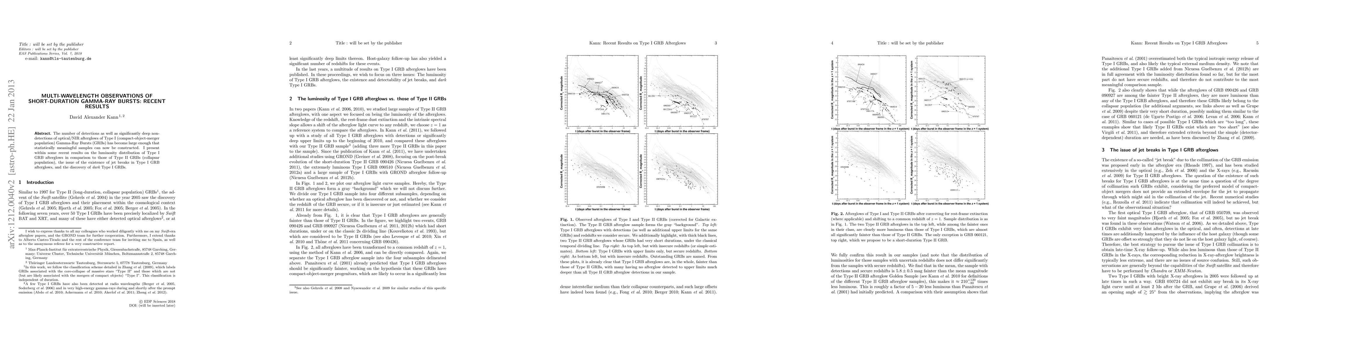 This paper discusses recent findings from multi-wavelength observations of short-duration Gamma-Ray Bursts (Type I GRBs), including their luminosity distribution compared to Type II GRBs, the presence of jet breaks, and the identification of dark Type I GRBs. Statistically significant samples now allow for meaningful comparisons and discoveries in this field.