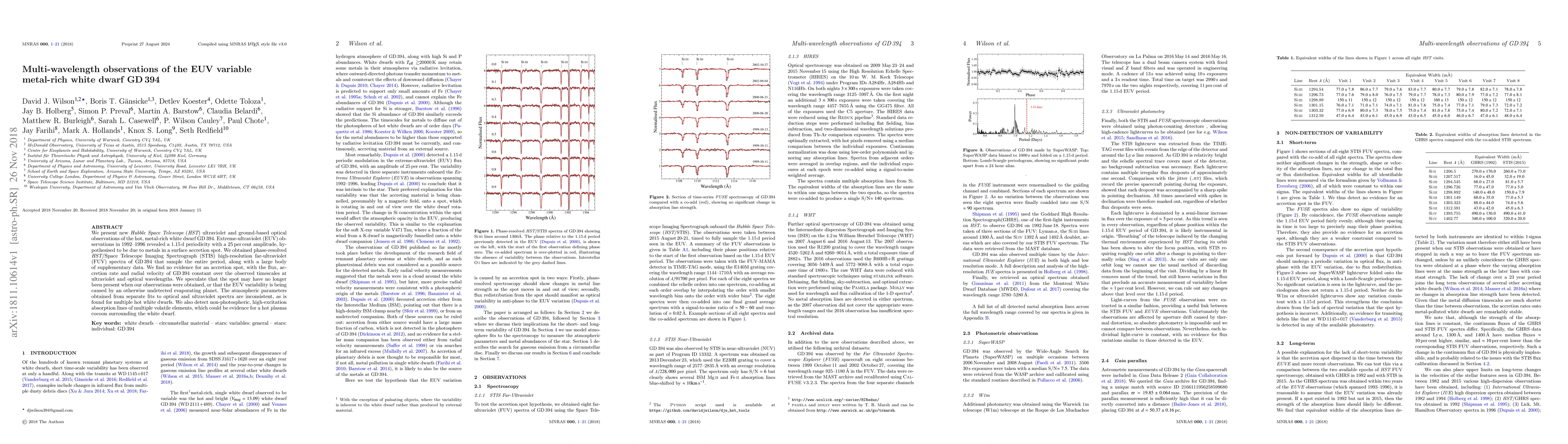 This paper reports new Hubble Space Telescope and ground-based observations of GD 394, a metal-rich white dwarf previously showing extreme-ultraviolet variability. The study finds no evidence for a surface accretion spot, suggesting the variability may be due to an undetected evaporating planet or the spot may no longer exist.