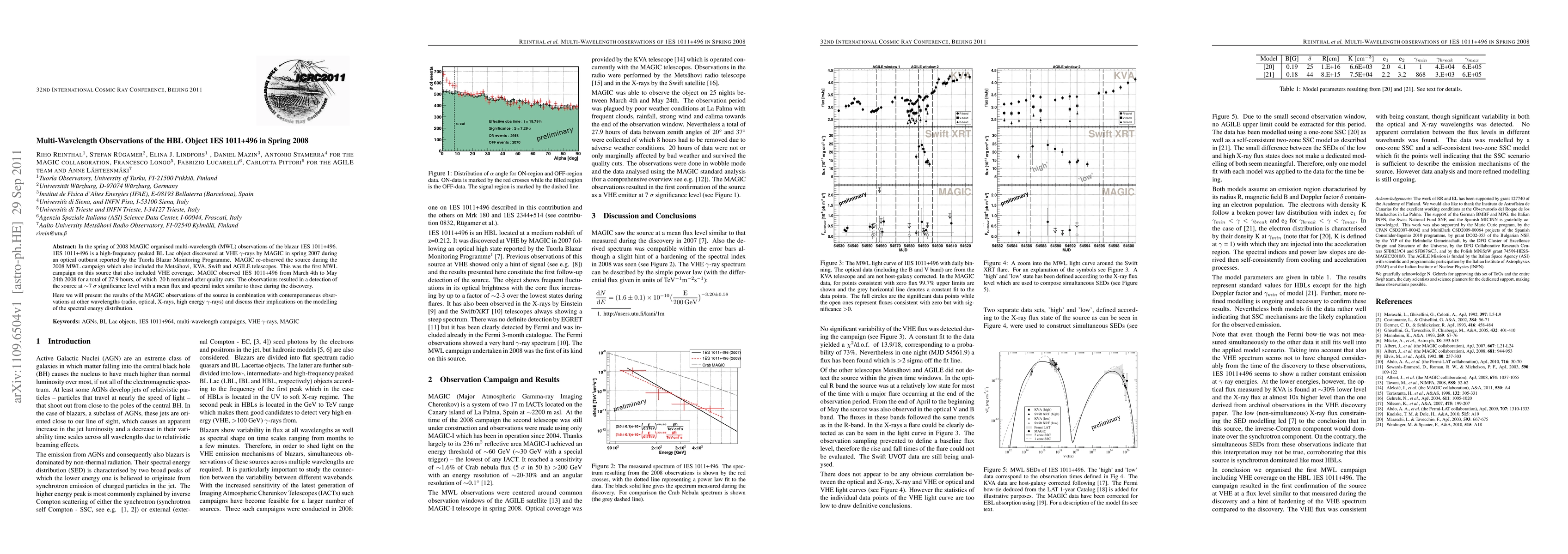 In the spring of 2008 MAGIC organised multi-wavelength (MWL) observations of the blazar 1ES 1011+496. 1ES 1011+496 is a high-frequency peaked BL Lac object discovered at VHE gamma-rays by MAGIC in spring 2007 during an optical outburst reported by the Tuorla Blazar Monitoring Programme. MAGIC re-observed the source during the 2008 MWL campaign which also included the Mets\"ahovi, KVA, Swift and AGILE telescopes. This was the first MWL campaign on this source that also included VHE coverage. MAGIC observed 1ES 1011+496 from March 4th to May 24th 2008 for a total of 27.9 hours, of which 20 h remained after quality cuts. The observations resulted in a detection of the source a ~7 sigma significance level with a mean flux and spectral index similar to those during the discovery. Here we will present the results of the MAGIC observations of the source in combination with contemporaneous observations at other wavelengths (radio, optical, X-rays, high energy gamma-rays) and discuss their implications on the modelling of the spectral energy distribution.