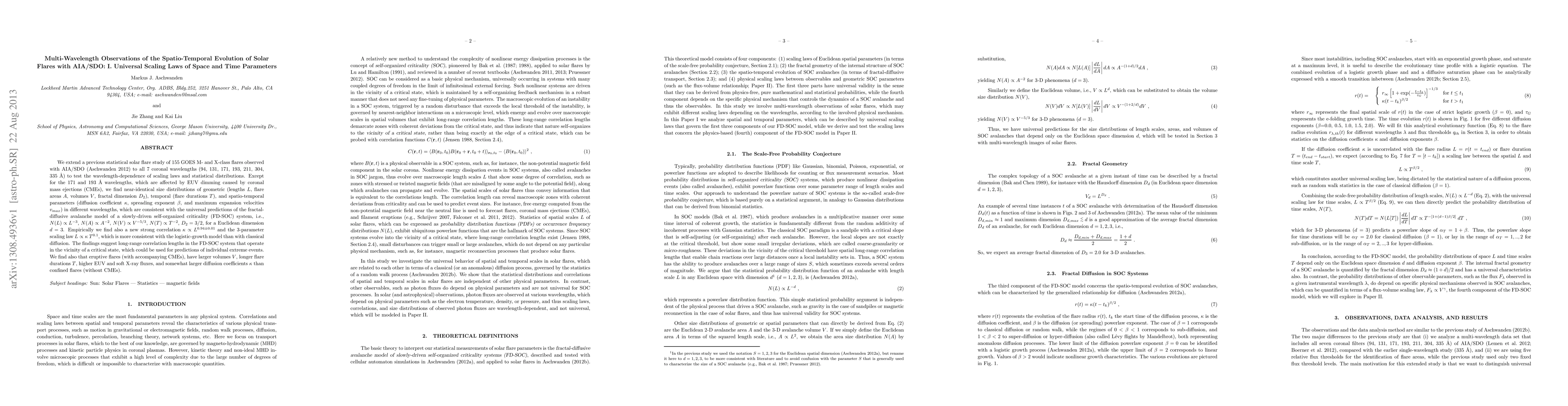 We extend a previous statistical solar flare study of 155 GOES M- and X-class flares observed with AIA/SDO (Aschwanden 2012) to all 7 coronal wavelengths (94, 131, 171, 193, 211, 304, 335 \ang) to test the wavelength-dependence of scaling laws and statistical distributions. Except for the 171 and 193 \ang\ wavelengths, which are affected by EUV dimming caused by coronal mass ejections (CMEs), we find near-identical size distributions of geometric (lengths $L$, flare areas $A$, volumes $V$, fractal dimension $D_2$), temporal (flare durations $T$), and spatio-temporal parameters (diffusion coefficient $\kappa$, spreading exponent $\beta$, and maximum expansion velocities $v_{max}$) in different wavelengths, which are consistent with the universal predictions of the fractal-diffusive avalanche model of a slowly-driven self-organized criticality (FD-SOC) system, i.e., $N(L) \propto L^{-3}$, $N(A) \propto A^{-2}$, $N(V) \propto V^{-5/3}$, $N(T) \propto T^{-2}$, $D_2=3/2$, for a Euclidean dimension $d=3$. Empirically we find also a new strong correlation $\kappa \propto L^{0.94\pm0.01}$ and the 3-parameter scaling law $L \propto \kappa\ T^{0.1}$, which is more consistent with the logistic-growth model than with classical diffusion. The findings suggest long-range correlation lengths in the FD-SOC system that operate in the vicinity of a critical state, which could be used for predictions of individual extreme events. We find also that eruptive flares (with accompanying CMEs), have larger volumes $V$, longer flare durations $T$, higher EUV and soft X-ray fluxes, and somewhat larger diffusion coefficients $\kappa$ than confined flares (without CMEs).